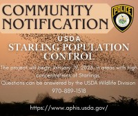 USDA Confirms Starling Pesticide Operation Is Not Linked to Local Agencies **Important Community Information** The USDA will be conducting pesticide applications in this area to control the starling population. The pesticides used are rapidly meta...