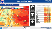 Today A 10 percent chance of showers and thunderstorms after 4pm. Sunny and hot, with a high near 106. Breezy, with a southwest wind 15 to 20 mph, with gusts as high as 30 mph. Tonight Partly cloudy, with a low around 74. Breezy, with a south sout...