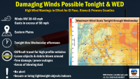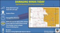 ..HIGH WIND WARNING REMAINS IN EFFECT UNTIL 5 PM MST TODAY... * WHAT...Northwest winds 30 to 40 mph with gusts to 65 mph expected. * WHERE...Kiowa, Bent, Baca, Prowers Counties. * WHEN...Until 5 PM MST this afternoon. * IMPACTS...Damaging winds co...