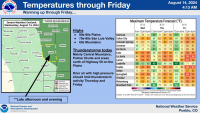 This Afternoon Sunny, with a high near 71. South southeast wind around 15 mph. Tonight Mostly clear, with a low around 36. Southeast wind 5 to 10 mph becoming west after midnight. Sunday Sunny, with a high near 81. West wind 5 to 10 mph becoming s...