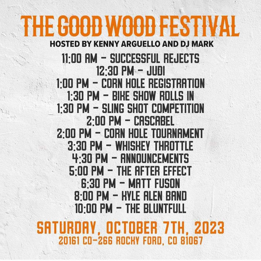 Description: Join The People of Southeast Colorado for Good Music. Good Food. Good Times. At the 3rd Annual Good Wood Festival in Rocky Ford, Colorado on October 7, 2023...