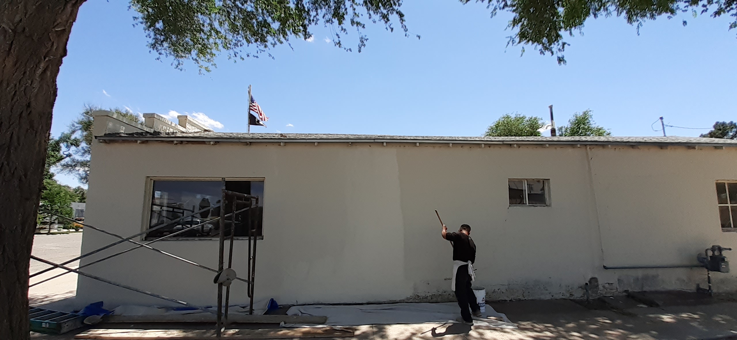 The facia of the building was scraped clean and given its first coat of new paint in just one day.