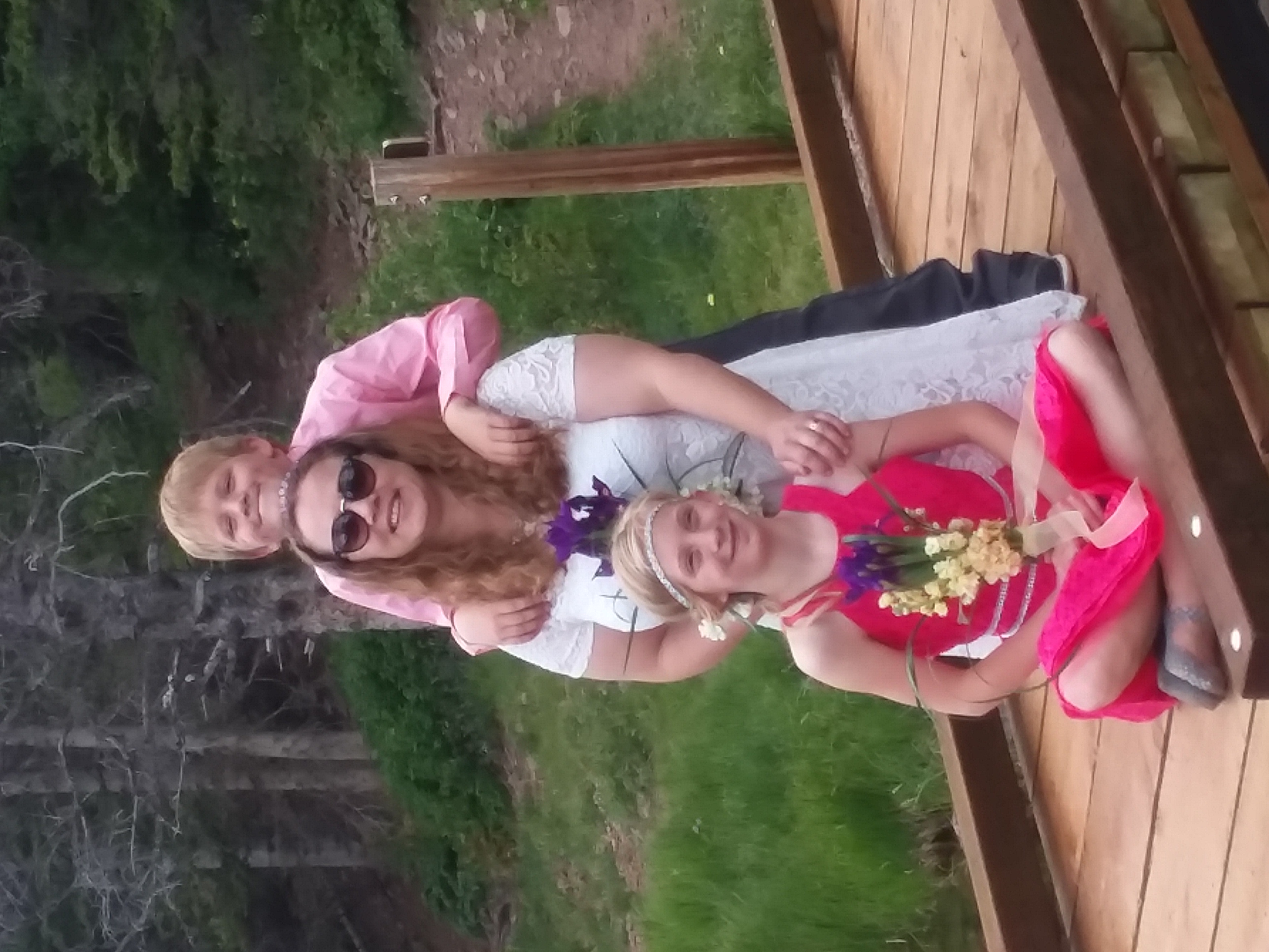 The Flower Girls led the way down the lakeside trail to the small wooden bridge, where the ceremony was held.