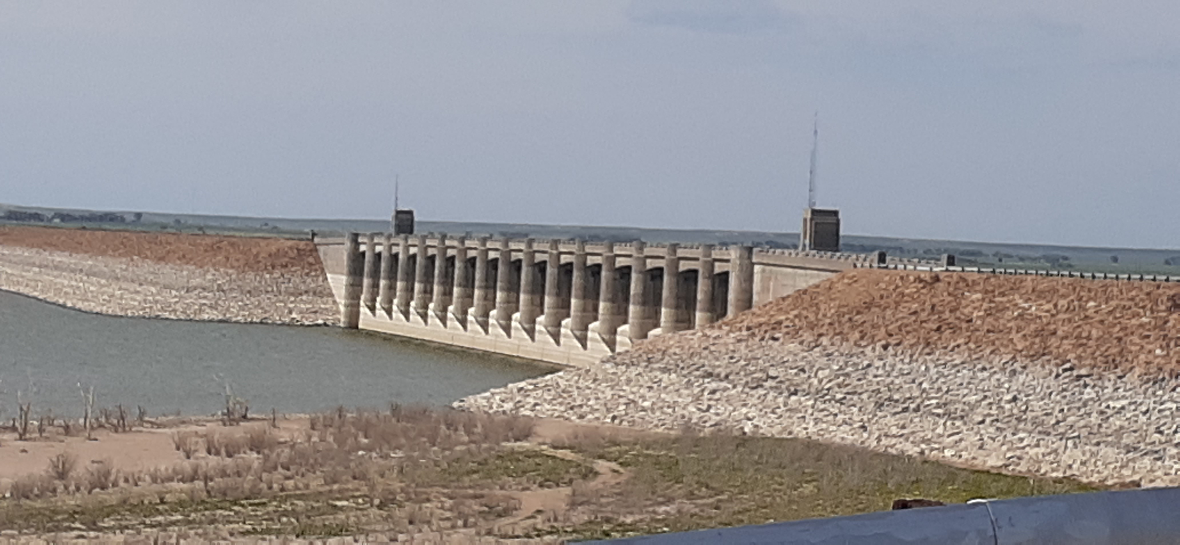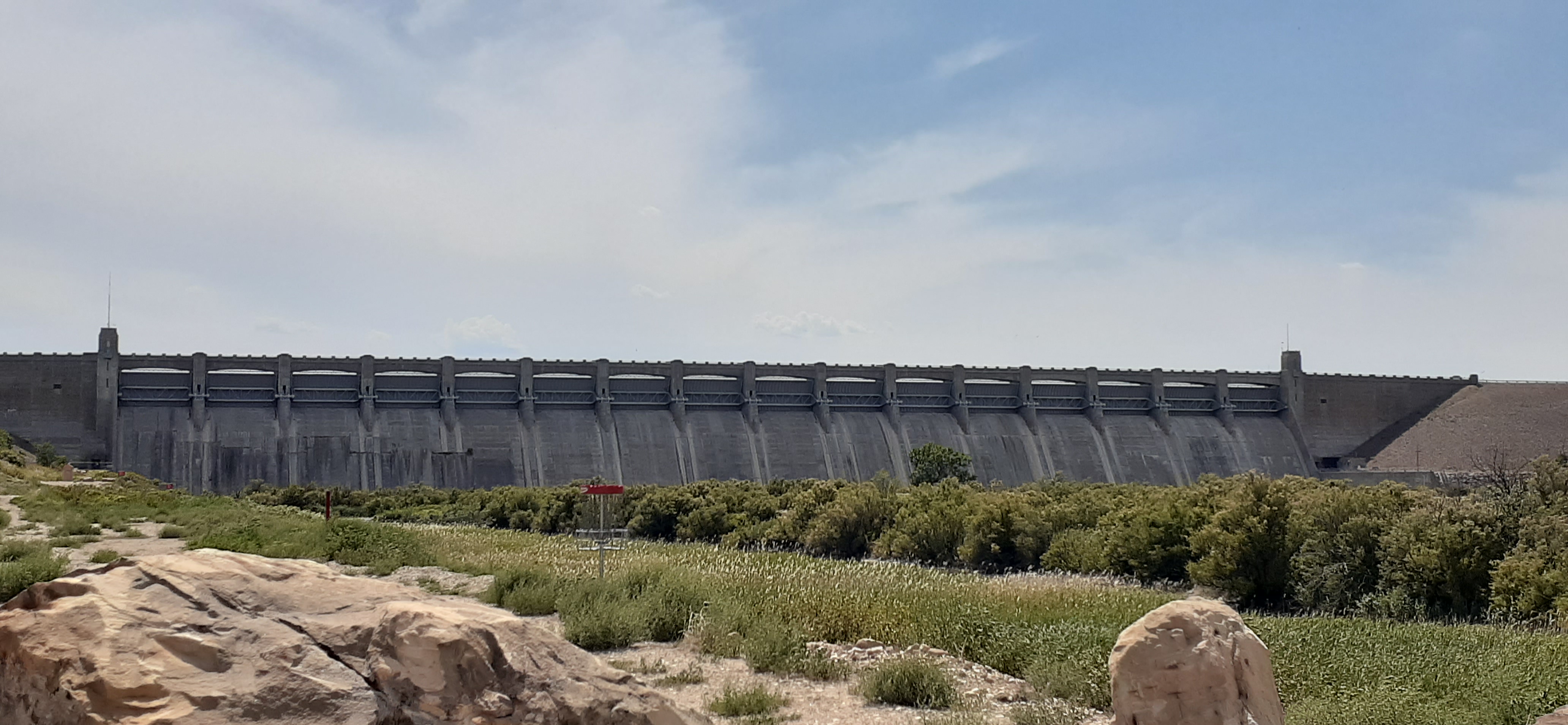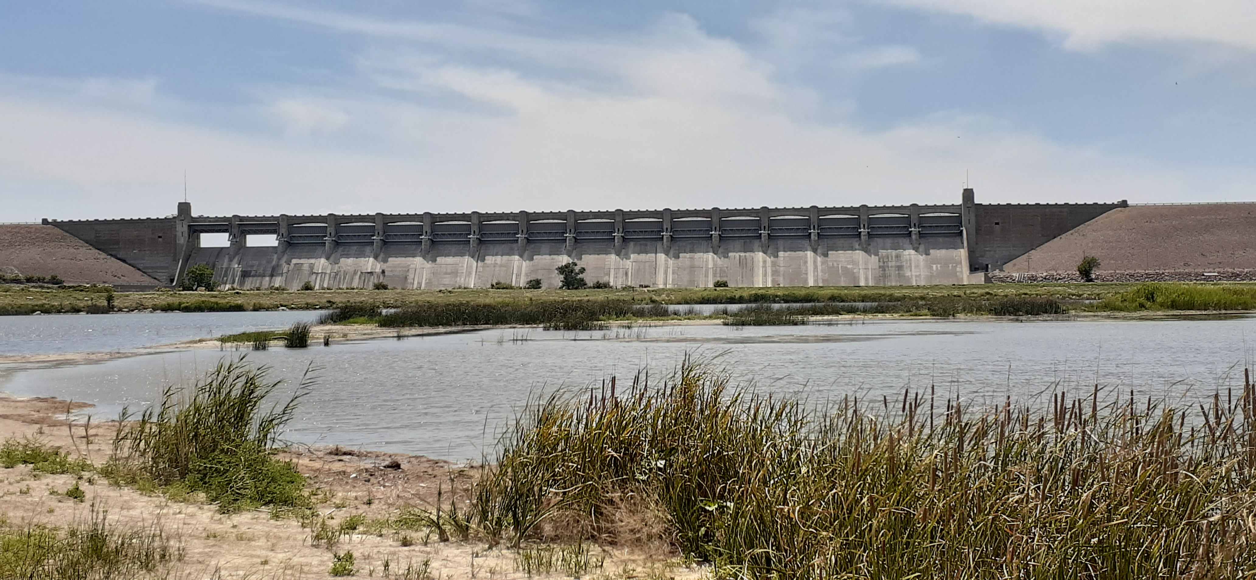 On "The Hasty Side" of John Martin Reservoir. You can see that two of the 16 total spillways are open. On this trip we watched them open and close several of the spillways, most likely as part of the required maintenance.