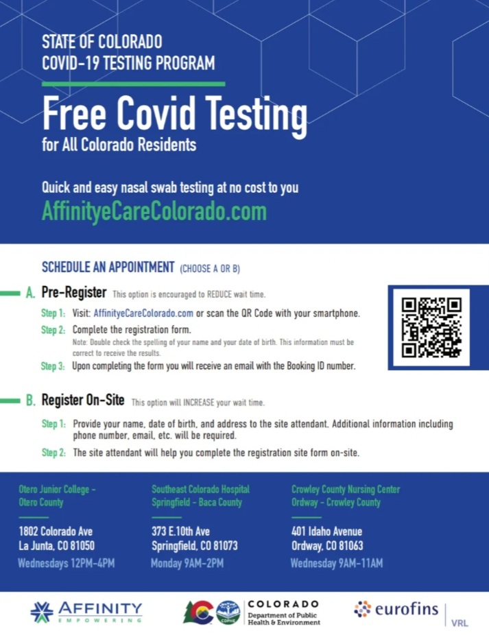 ü Crowley County: We currently have an active outbreak at Crowley County Junior/Senior High School. You can access outbreak information here: https://covid19.colorado.gov/