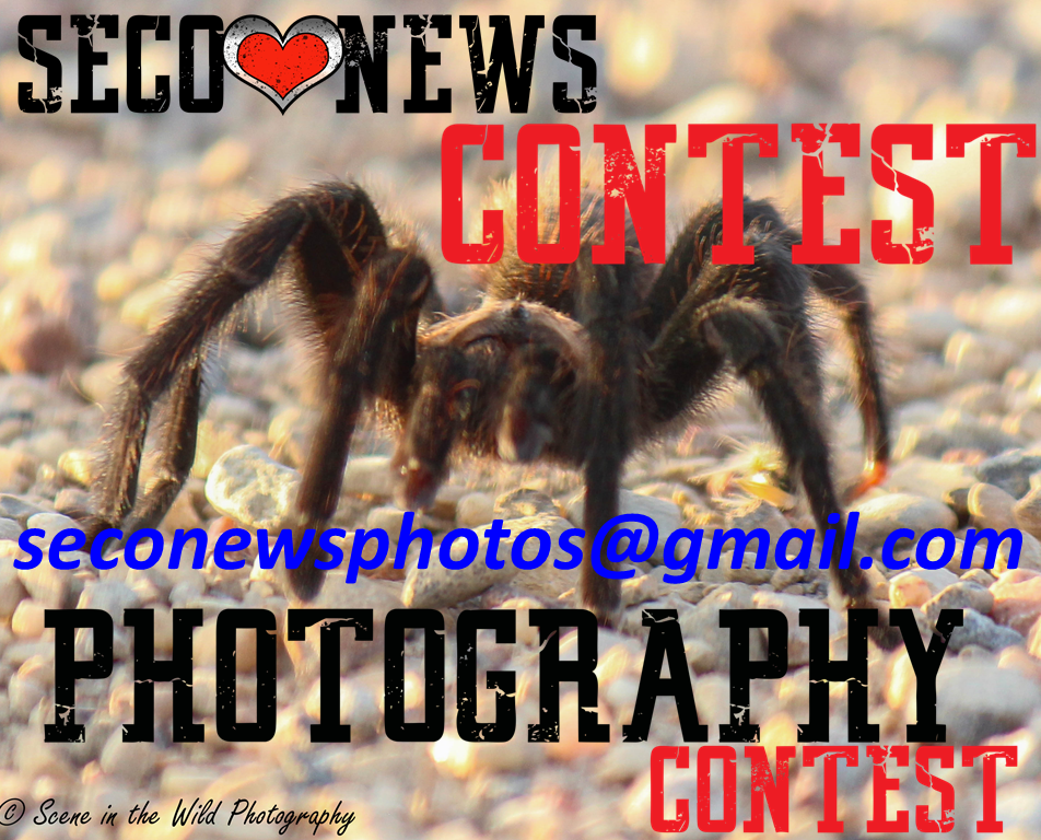 Description: Become a SECO News Tarantula Hunter in the 2021 SECO News Tarantula Photography Contest. (SECO News Tarantula Hunter Logo Design by Heath Adler)