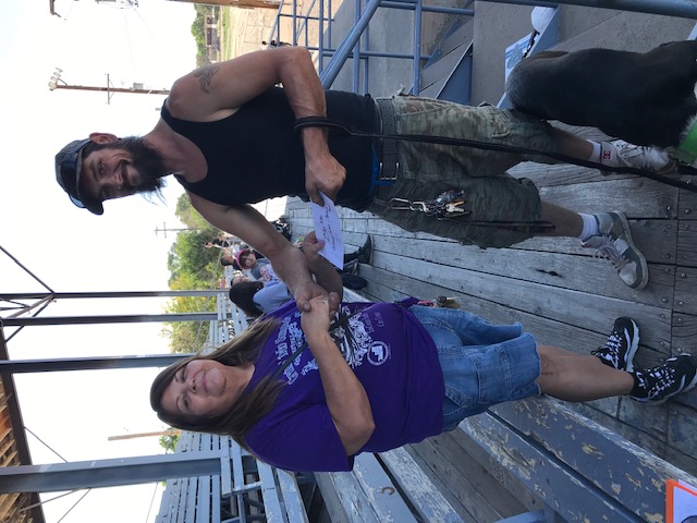 Catapult Contest Left to right: Sarah Dillon, Tri-County Family Care Center, Executive Director and Valentina Ryan, First place Distance and 3rd place Bullseye winner; 2nd place winner, Carol Segura (Not Pictured) and 3rd place winner, Rick Rickman. (Not Pictured)