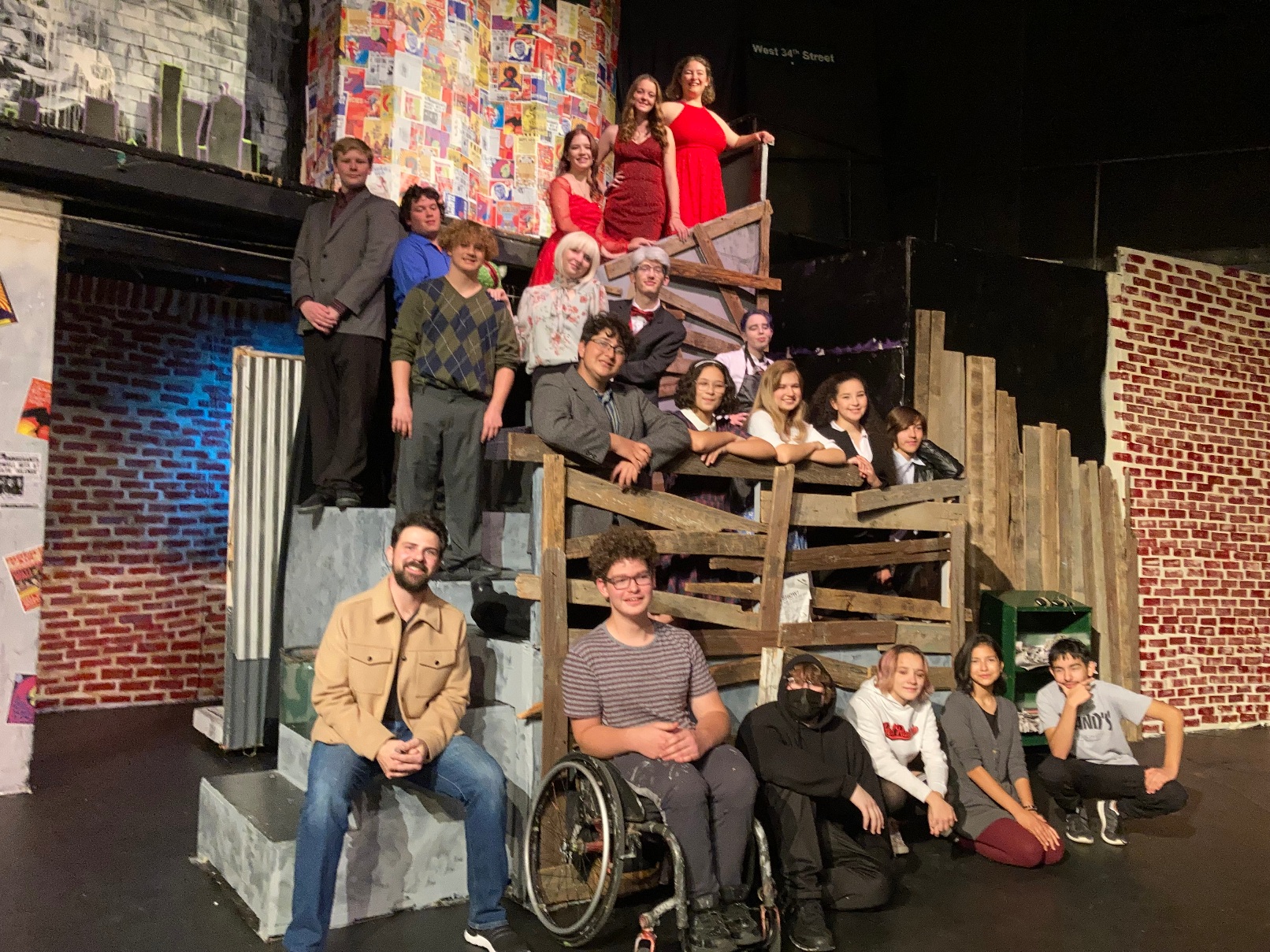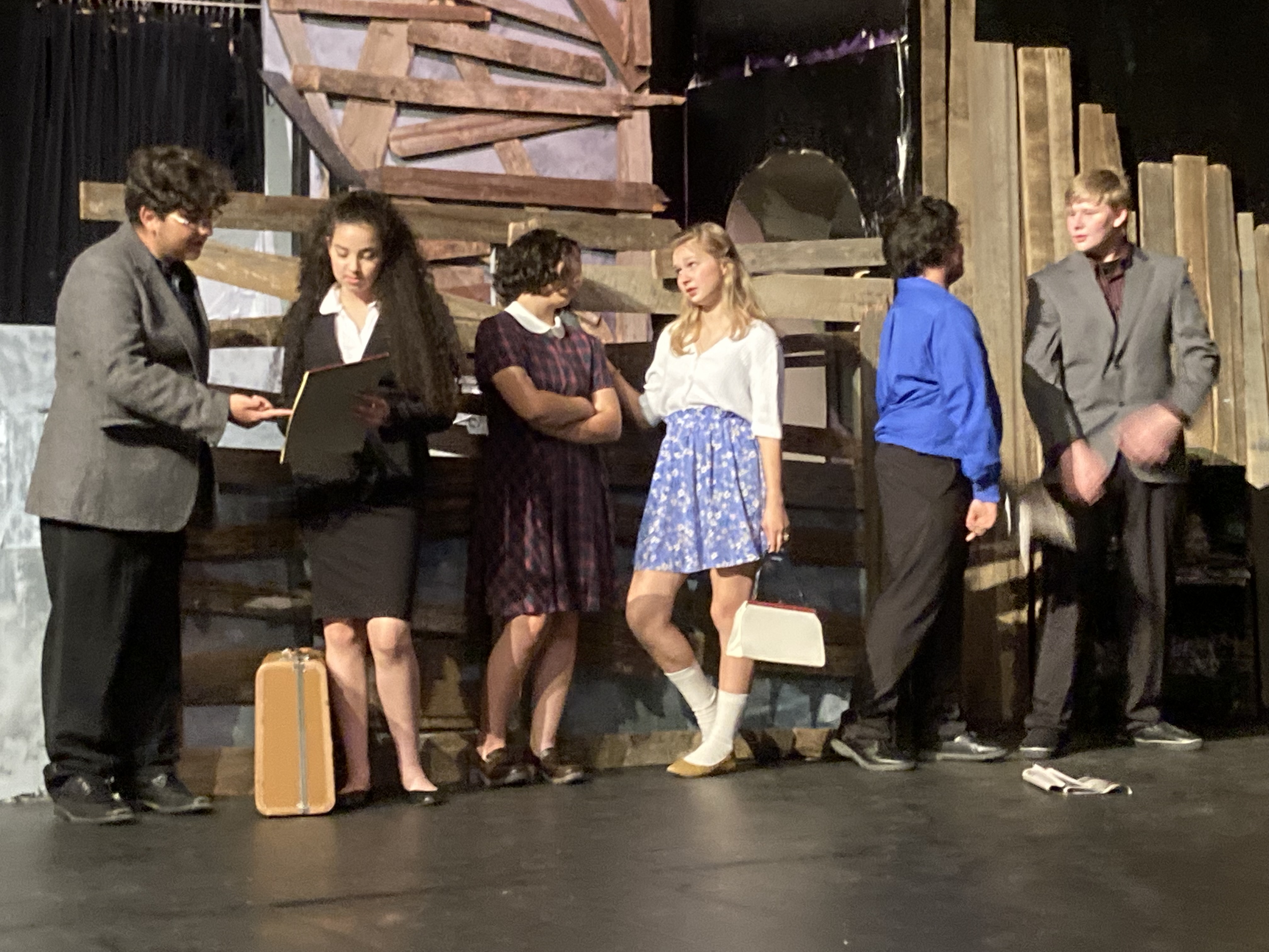 Cast and crew picture: Top row, left to right: Kaydence Lagergren, Lexi Minck, Teagan Summers; third row, left to right: Andrew Benjamin, Acynn Good-Coates, Noah Nunez-Rebel, Rachel Phillips, Ethan Malec, Lilly Klein; second row: Emiliano Hernandez, Isabella Ortiz, Bethany Taullie, Isadora Clark, Matthew Martinez; front row: LJHS Drama Director Stephen Matthews, Everett Ediger, Matt Avens, Kalila Orosco, Zoey Montoya and Leon Orosco-Martinez.