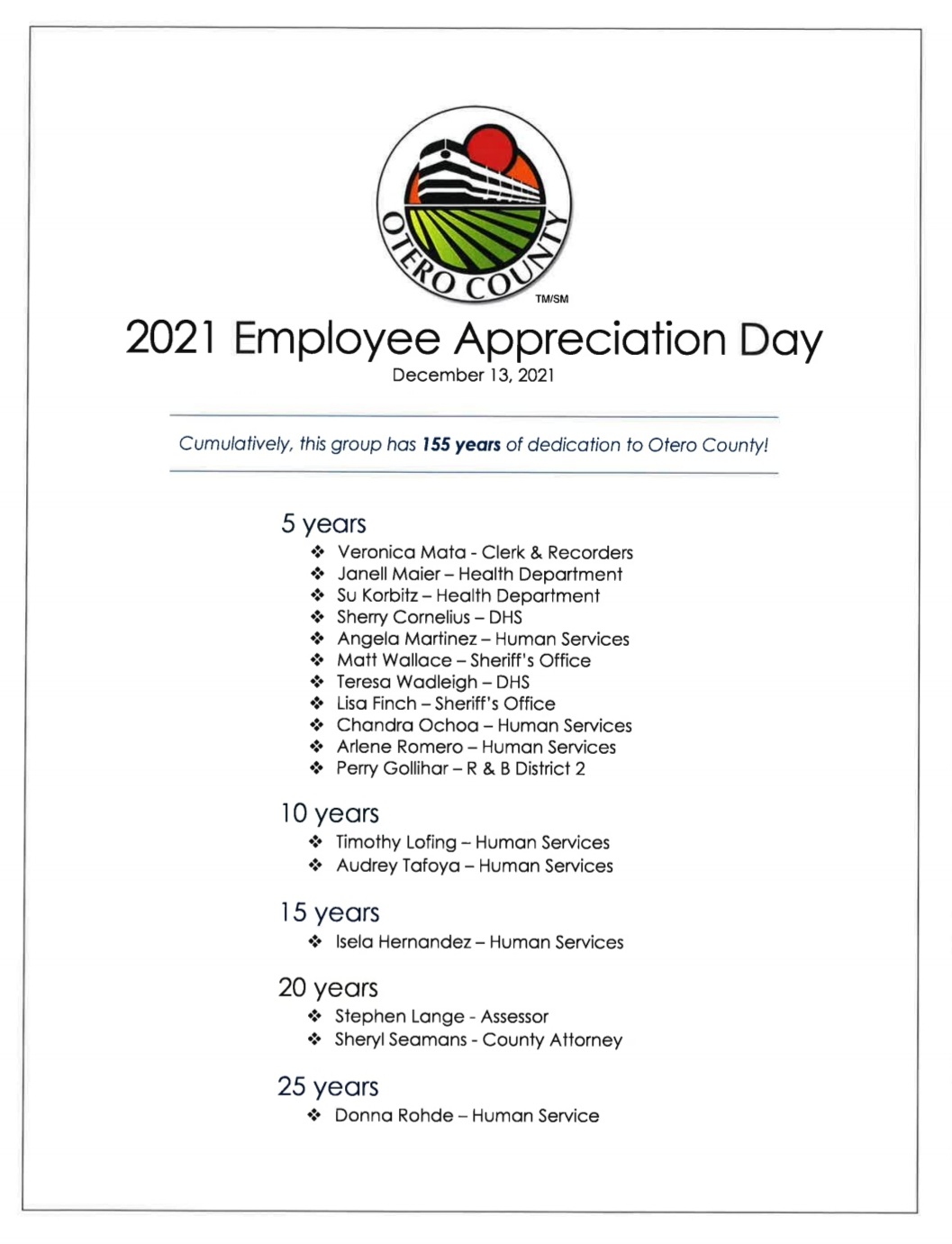 2021 Otero County Employee Service Awards