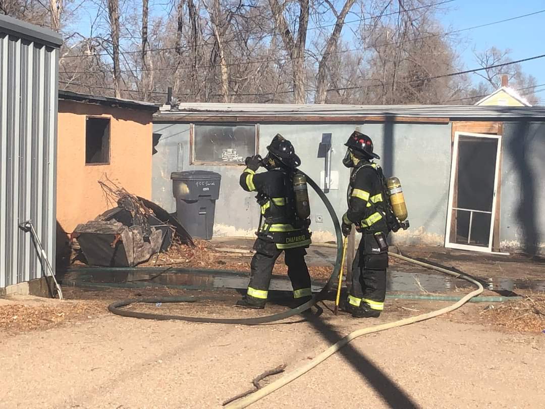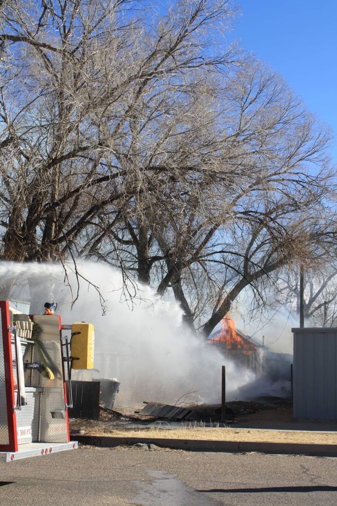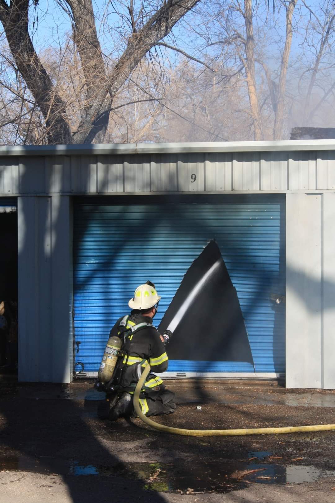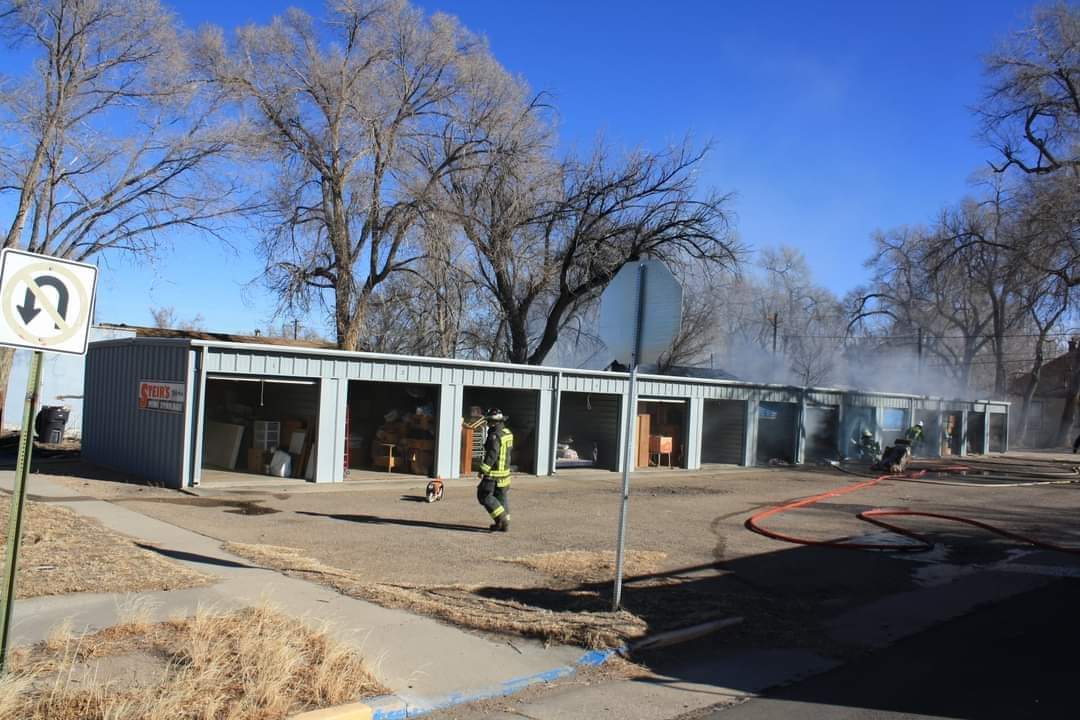 We requested mutual aid from Manzanola, La Junta, DFPC Engine 34, and Fowler. Forcible entry was initiated to storage units.