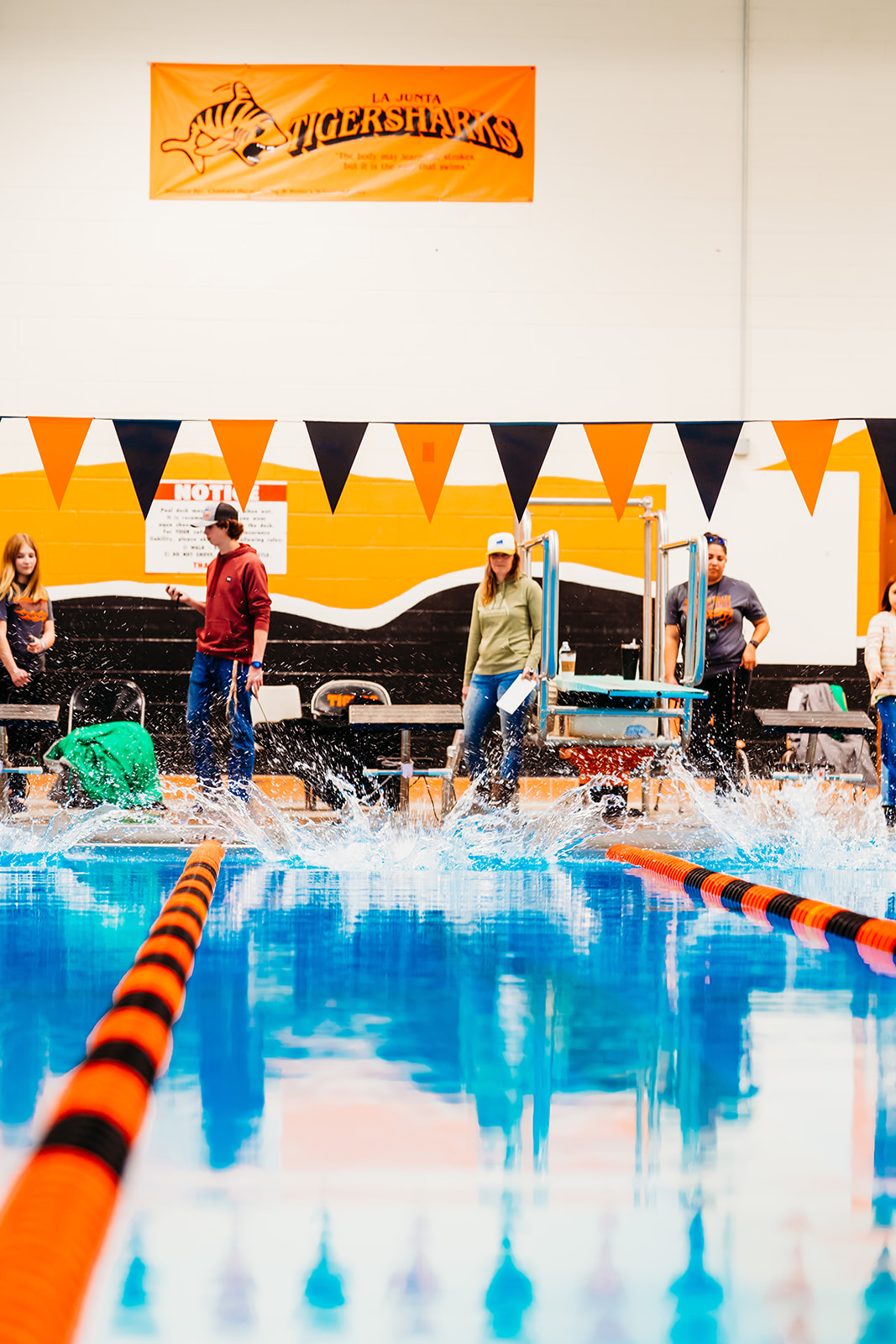 This unique arrangement allows Arkansas Valley schools to offer a school swim program to their students whereas they wouldn’t otherwise have enough people to fill an entire team.