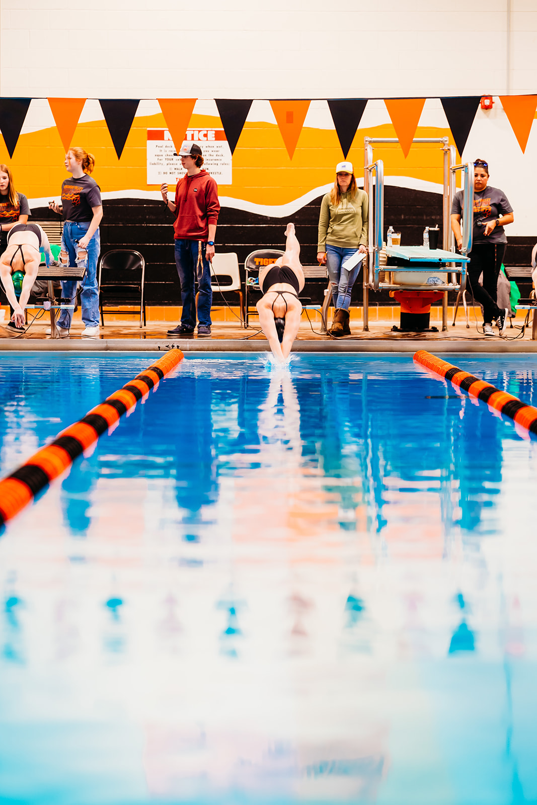 Aurora Baiardi [AVST] took first in the 50 Freestyle, with a state qualifying time of 28:15, as well as the 100 Freestyle with a state qualifying time of 1:02:06.