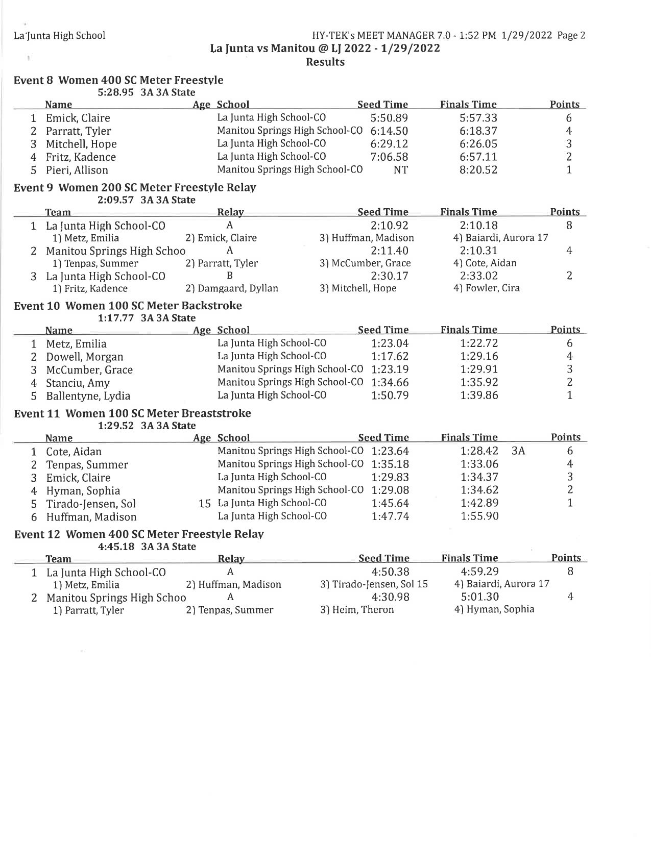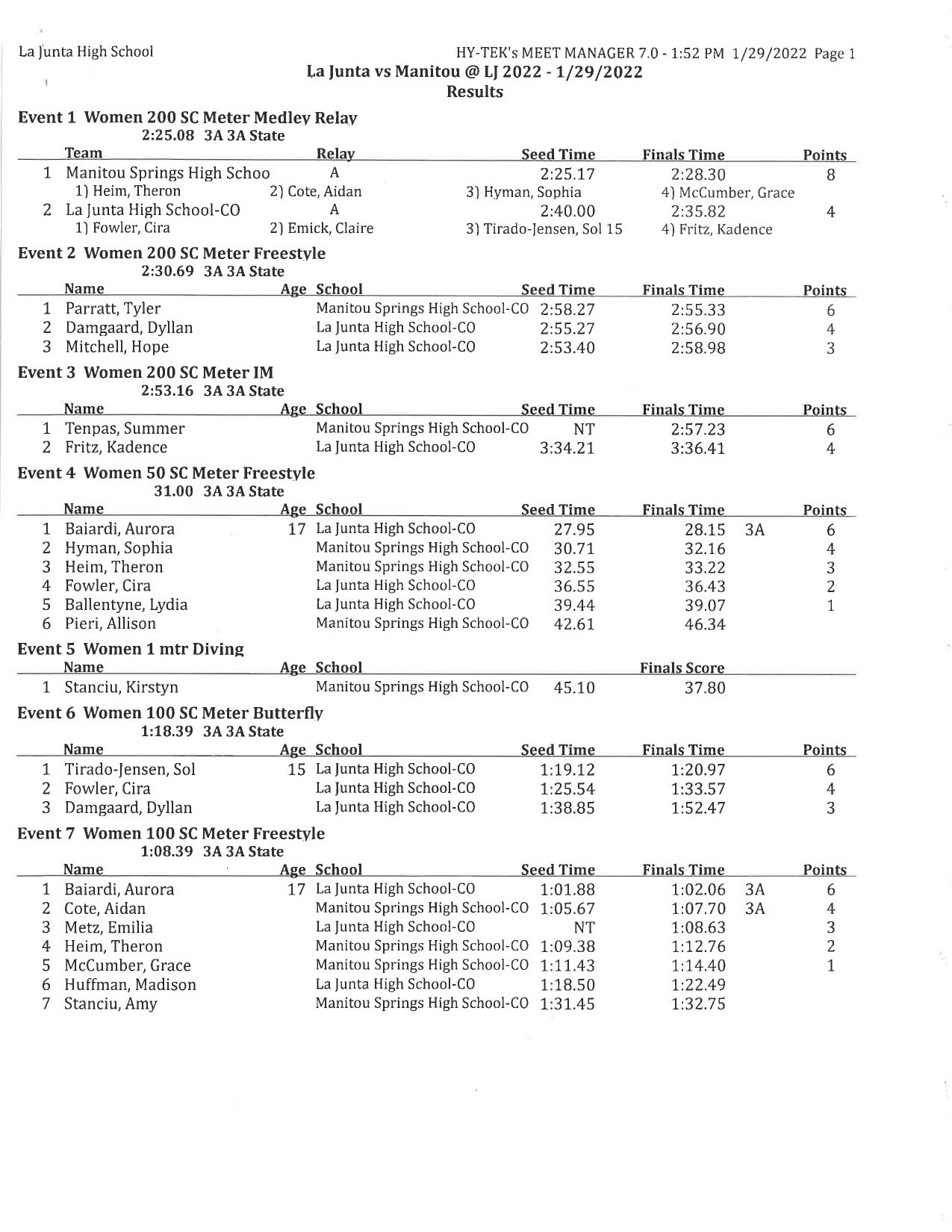 The Arkansas Valley Swim Team competed against Manitou Springs, taking the win during their last Home meet of the season on Saturday, January 29, 2022.