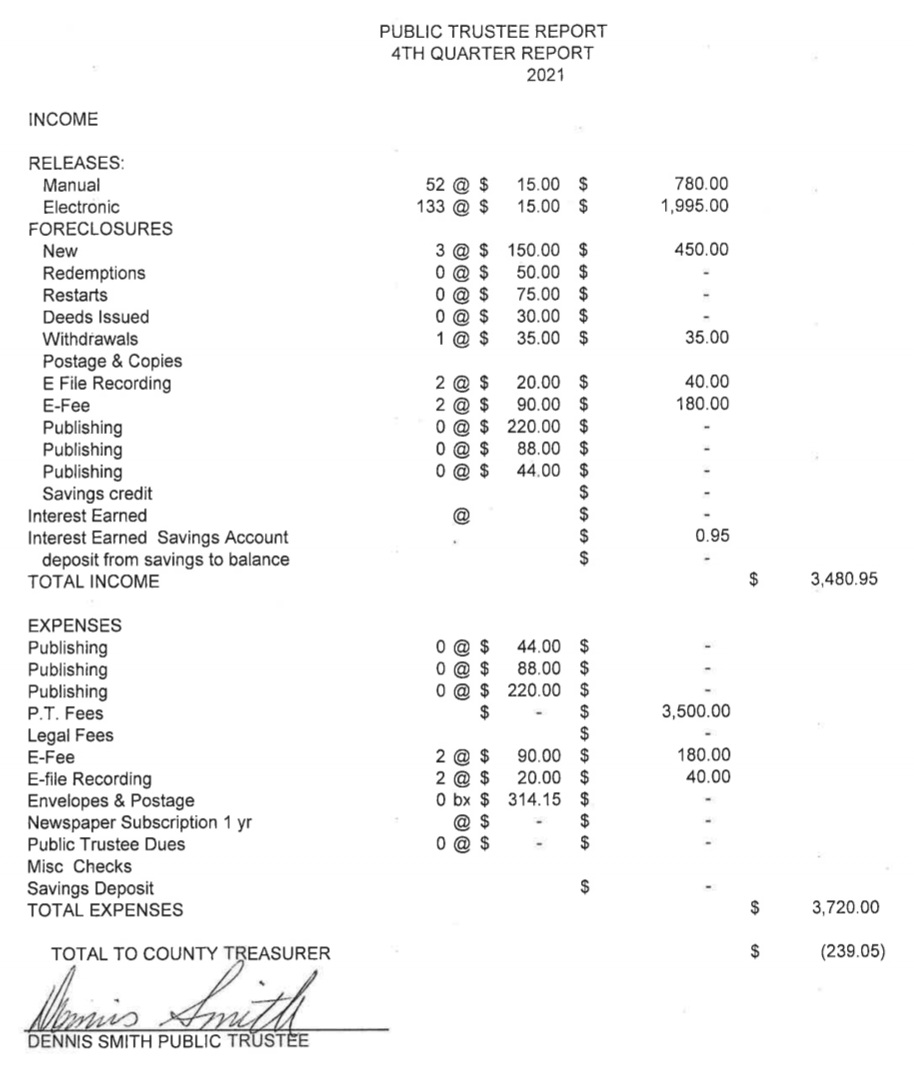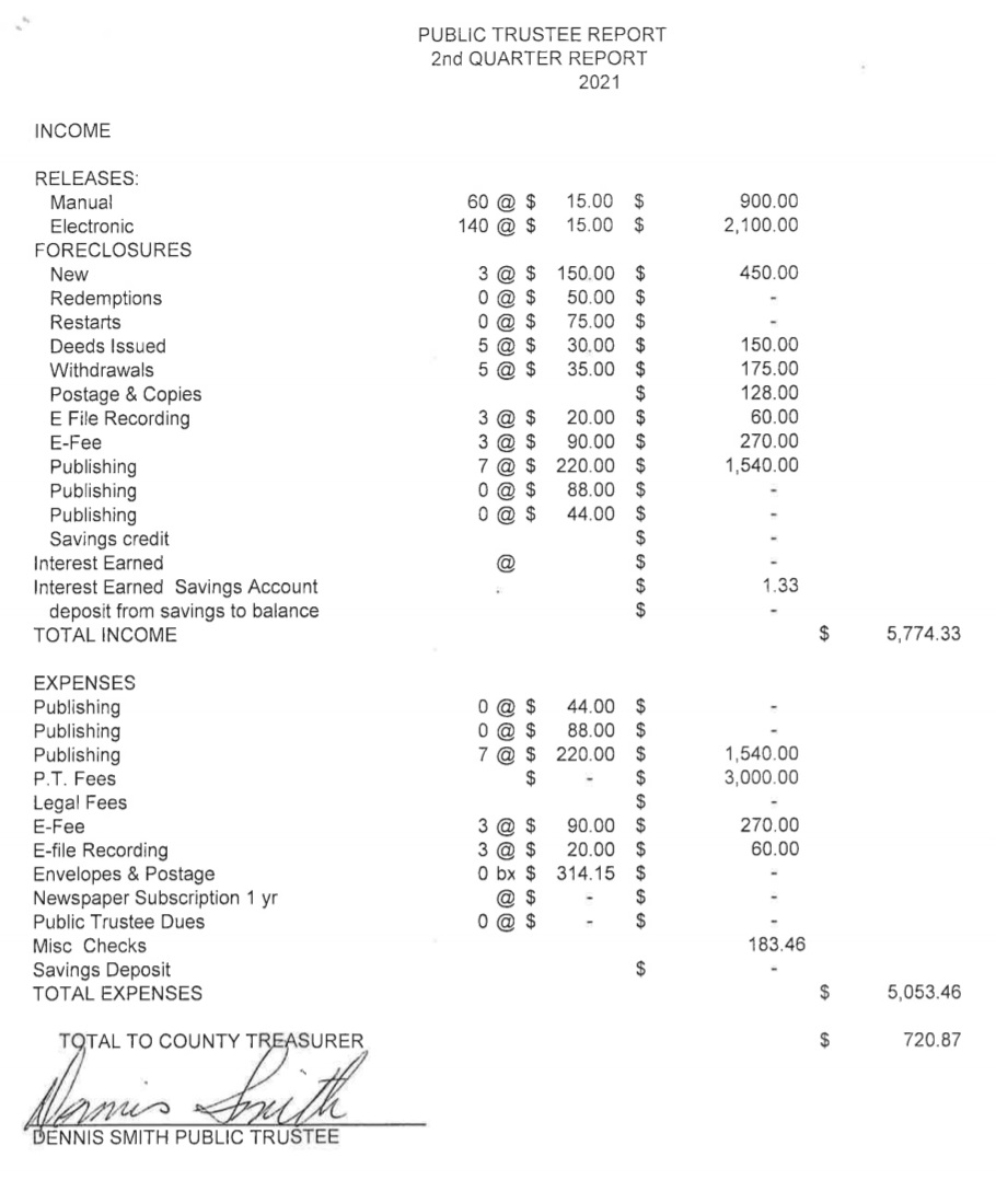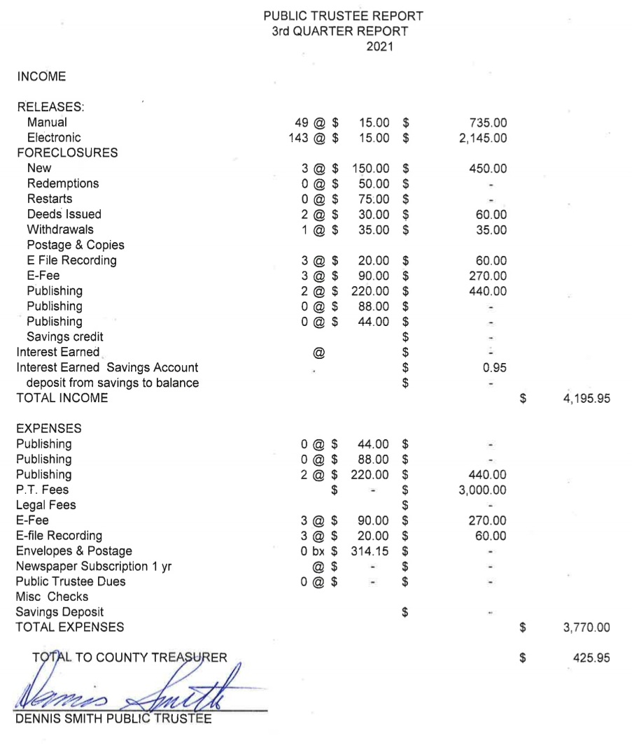 4) The Otero County Public Trustee's report was accepted by the Commissioners. (attached in document gallery)