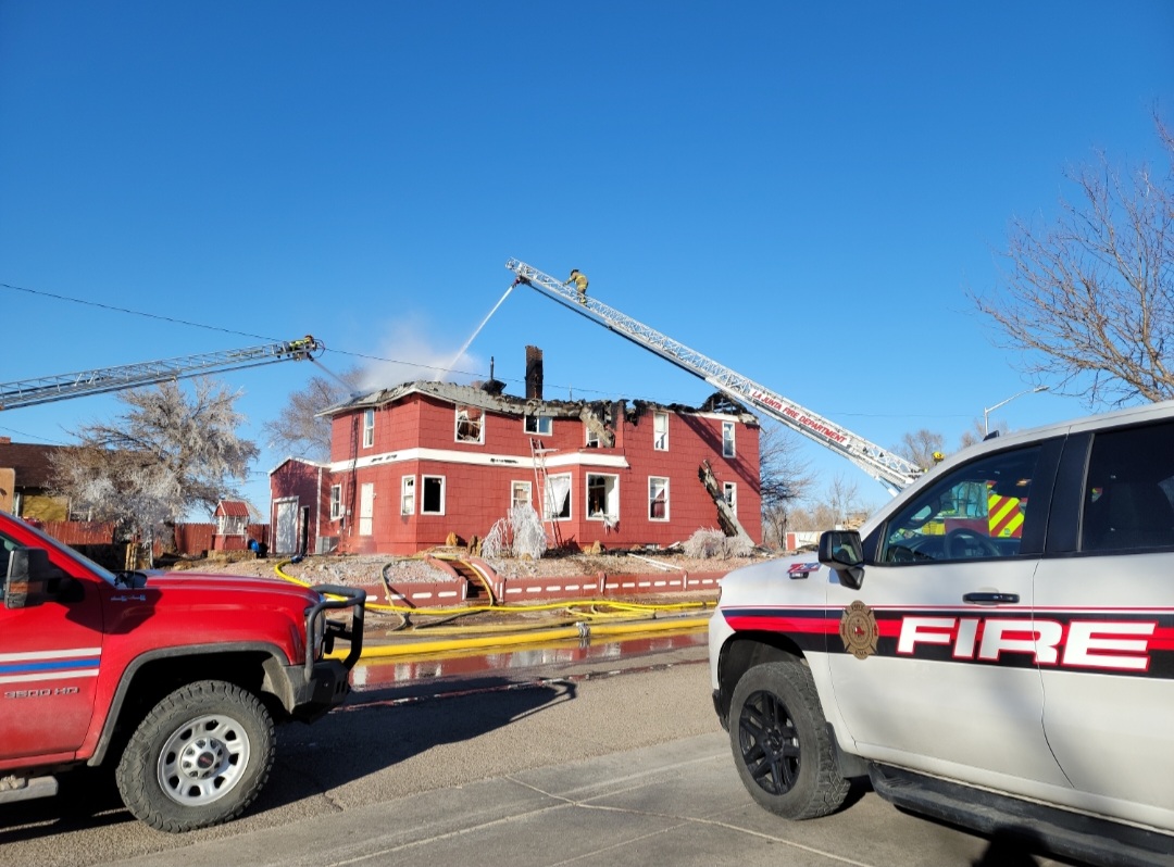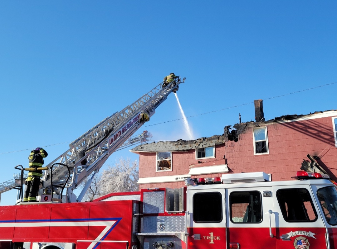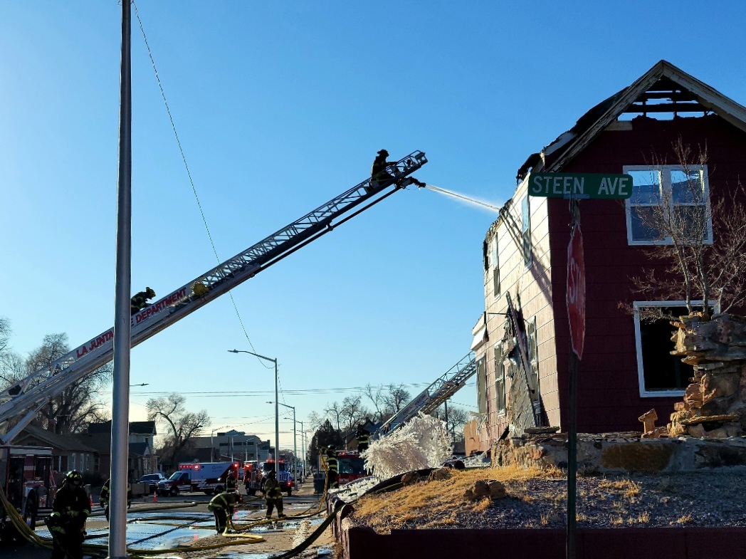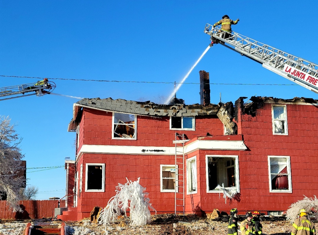Description: The La Junta Fire Department spent much of the day fighting a two story structure fire on Wednesday. Press Play to watch interview with La Junta Fire Chief Brad Davidson. (Photos by: Adrian Hart)
