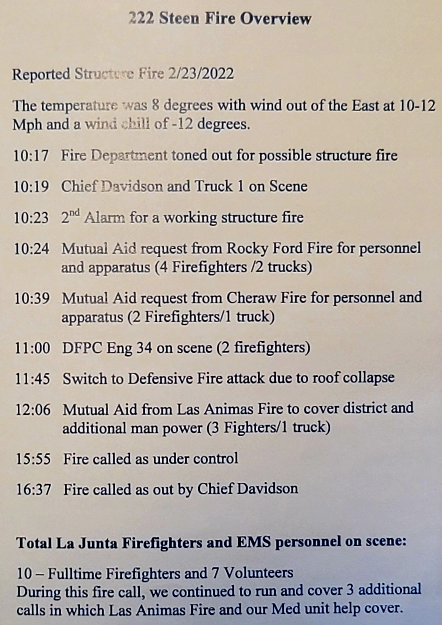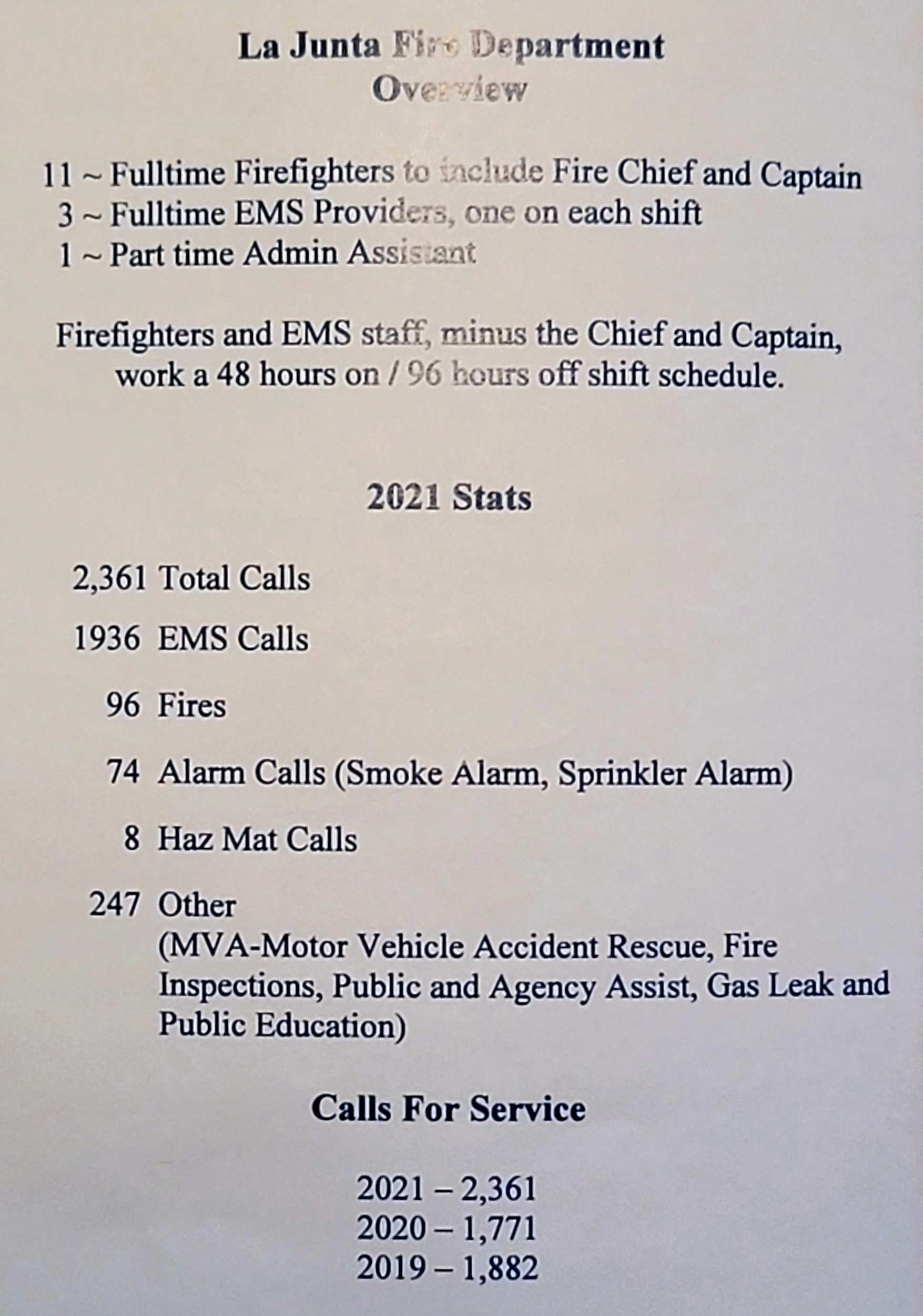 La Junta Fire Department 2021 Stats & 222 Steen Report