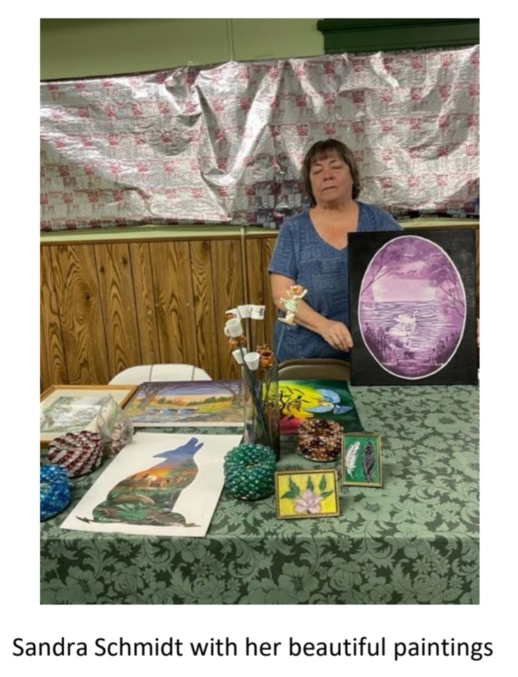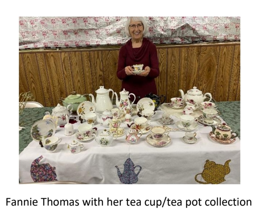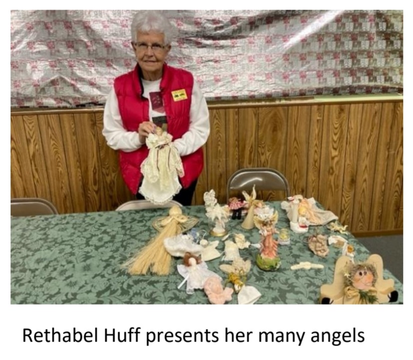 The women had a FUN time showing off their hobby/craft and collections! Not pictured was Patty Bennett with a very ornate sewn jacket and Karen Menges with her collection of Christmas sleighs.
