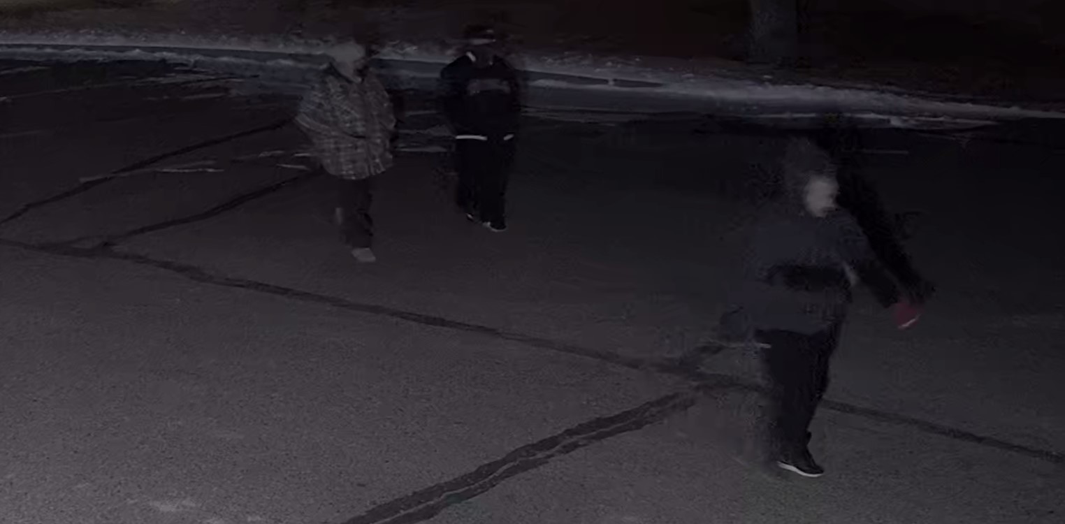 Surveillance images captured three individuals possibly connected with the shooting, including an unidentified male in a grey and black plaid jacket and two other individuals wearing dark-colored jackets.