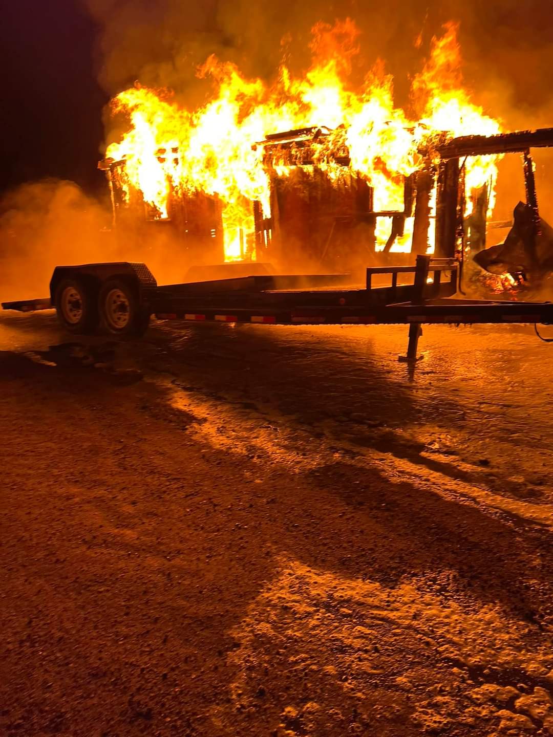At approx 1232 am this morning we’re pages out to a reported structure fire in the 26000 blk of HWY 50. While enroute heavy fire could be seen from a far distance.