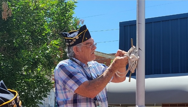 Jay Raises The New Flag at The La Junta Chamber of Commerce: