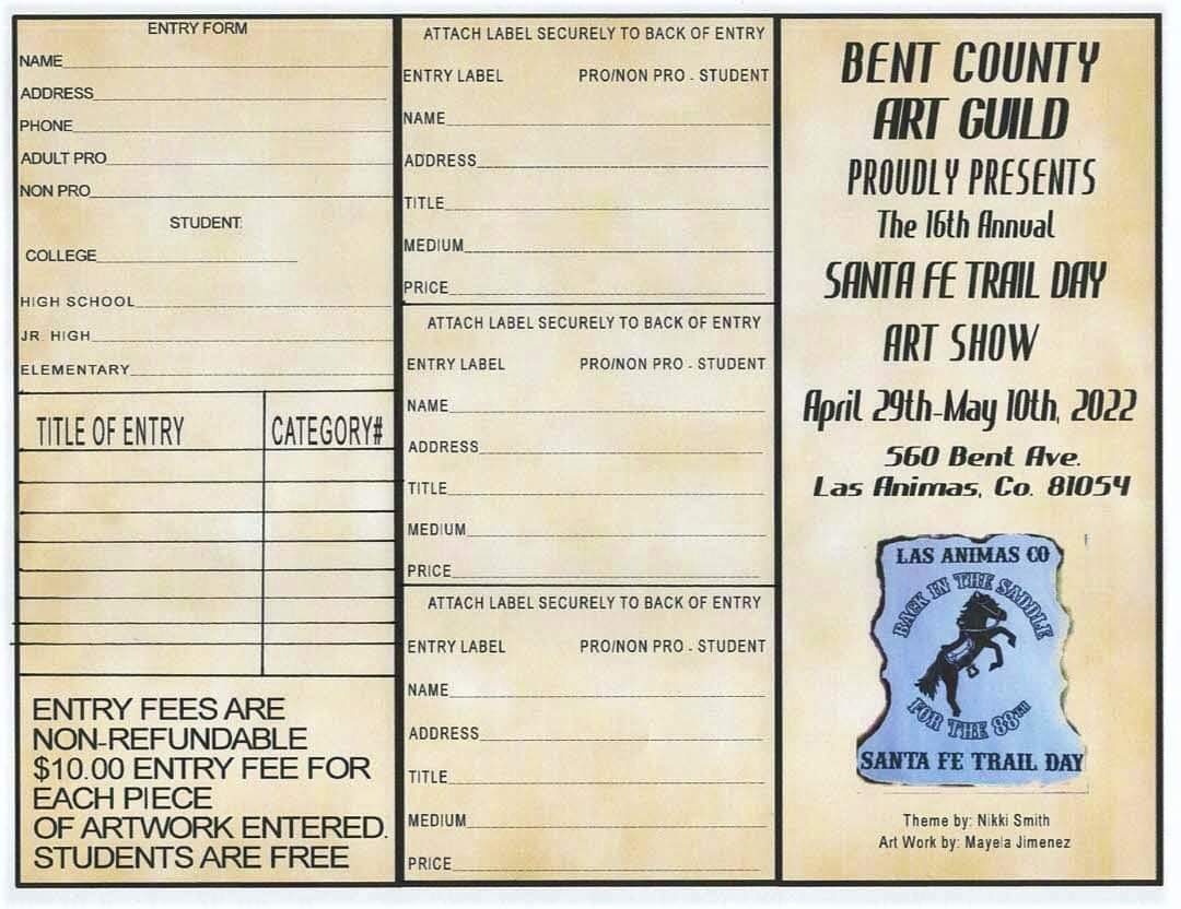 Bent County Art Guild proudly presents the 16th Annual Santa Fe Trail Day Art Show