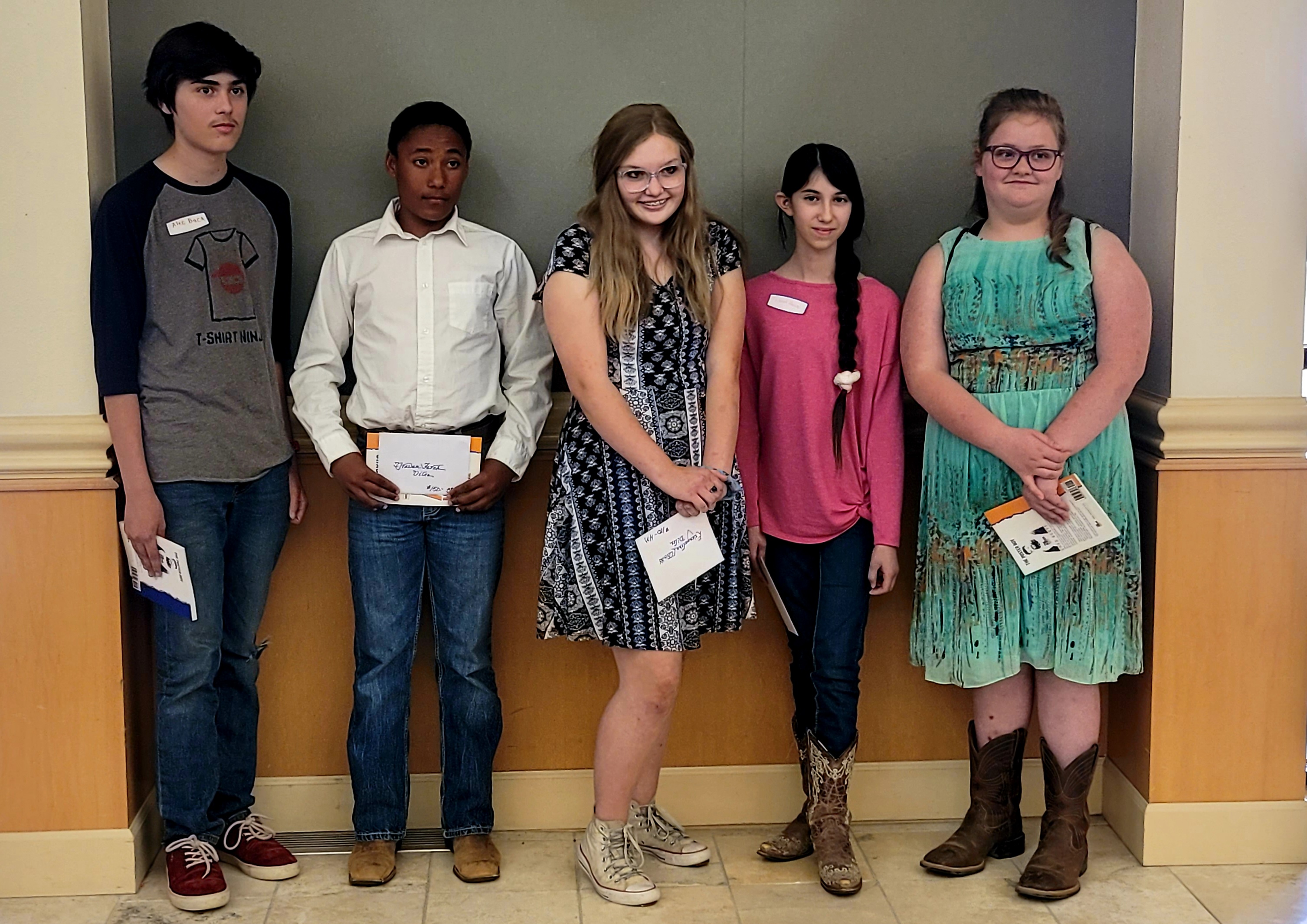 Description: LJ Willis - 2nd place - Vilas, Jazmine Gardea - Honorable Mention - Vilas, Alex Wesbrook - 4E Award - HomeSchool/Las Animas, Chrisily Furia - 1st place - Hoehne, John Terry - 4th place - Hoehne, Grace Gardner - 3rd place - Las Animas.