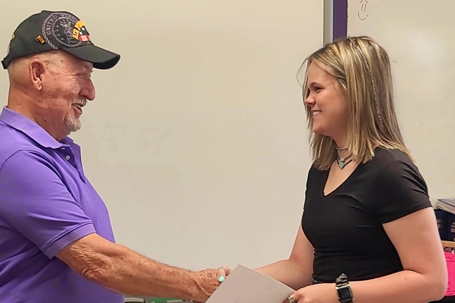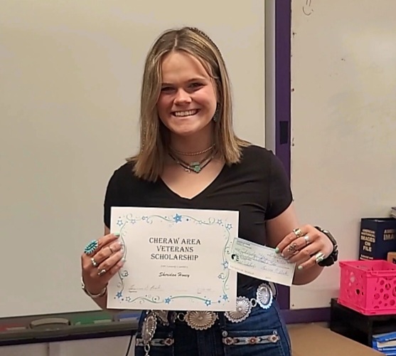 Dan Beebe presented Cheraw High School Student Sheridan Honey with the 2022 Cheraw Area Veterans Scholarship...