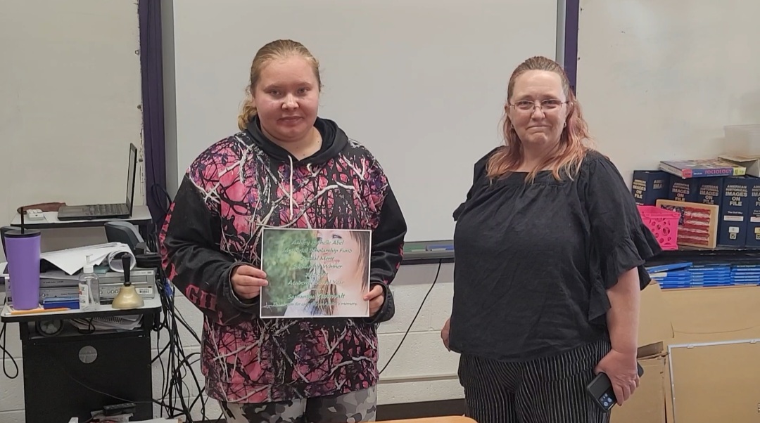 Thursday morning Jody Bracy presented Cheraw Student Samantha Zumwalt with a Ashley Rochelle Abel Memorial Scholarship.