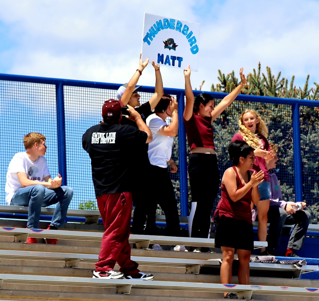 Swink Track Coach Jen Garcia and Bus Driver Aaron Torres brought a group of Swink students to cheer for Matt as he competed at regionals at Fountain-Fort Carson High School. Matt competed in the Men's 800M Run, the Shot Put, and the Running Long Jump in this Special Olympics Colorado event.