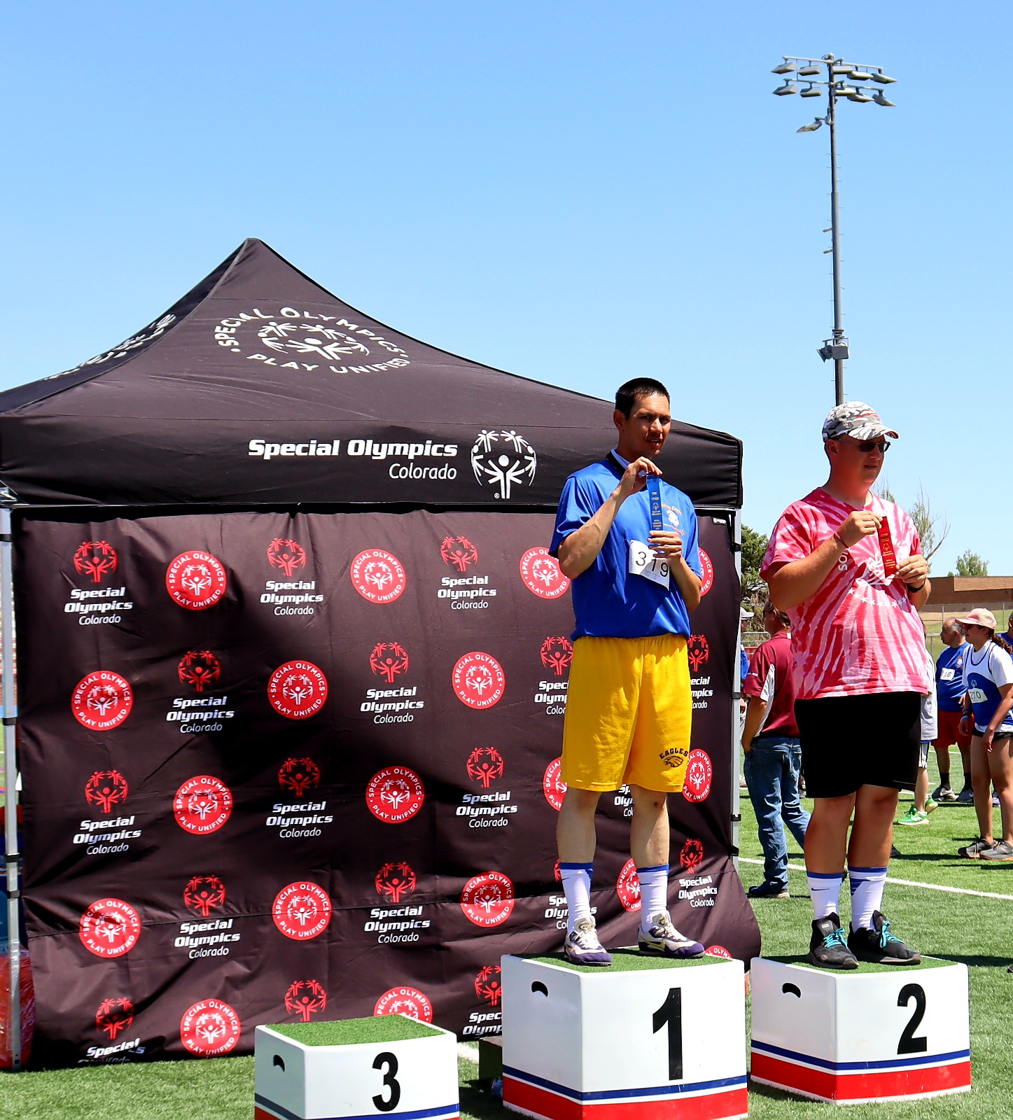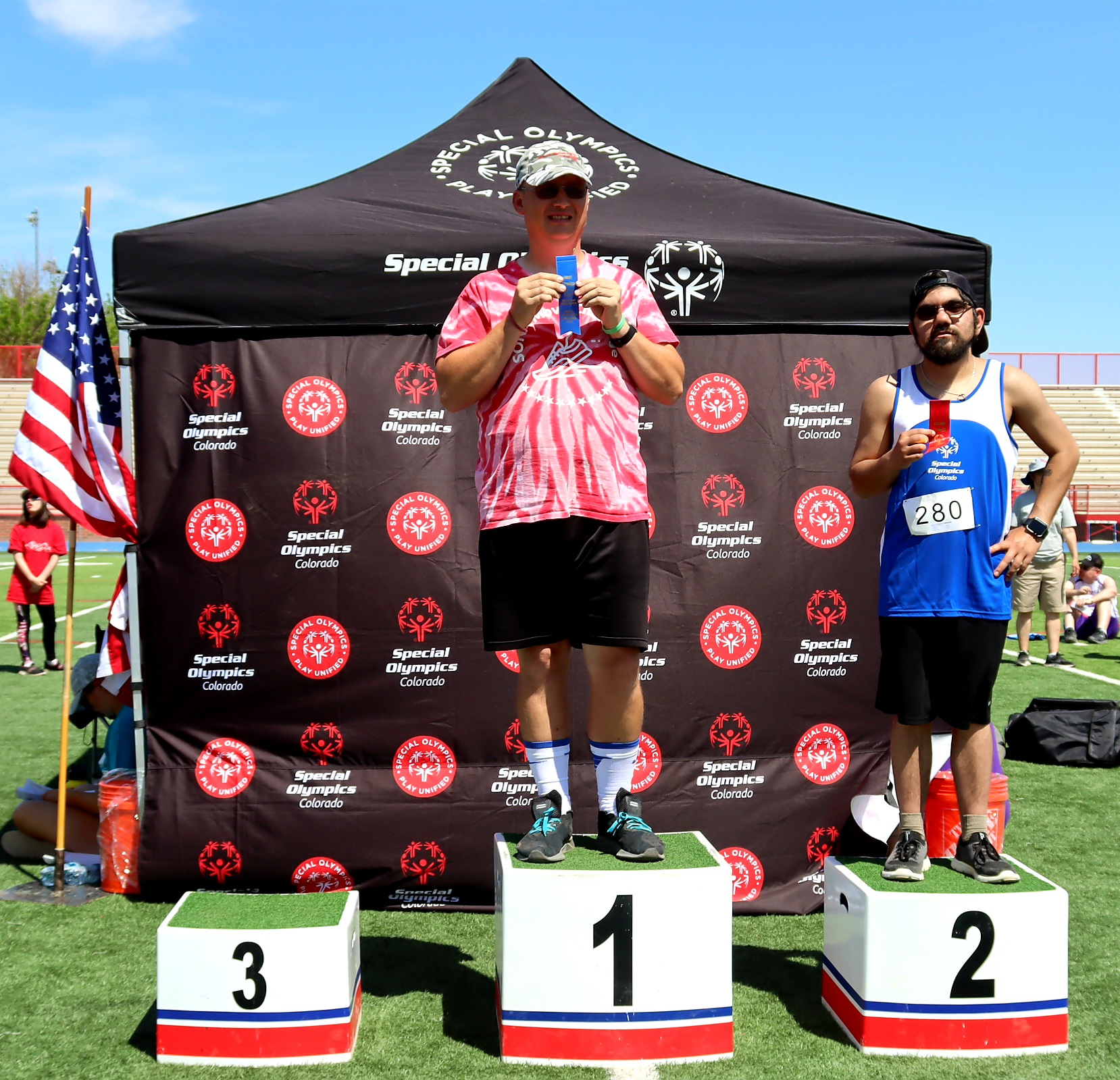 Description: Matt Harris of Swink Wins 800M at Special Olympics Colorado SE Regionals, takes 2nd place in Running Long Jump + Shot Put on May 14, 2022.