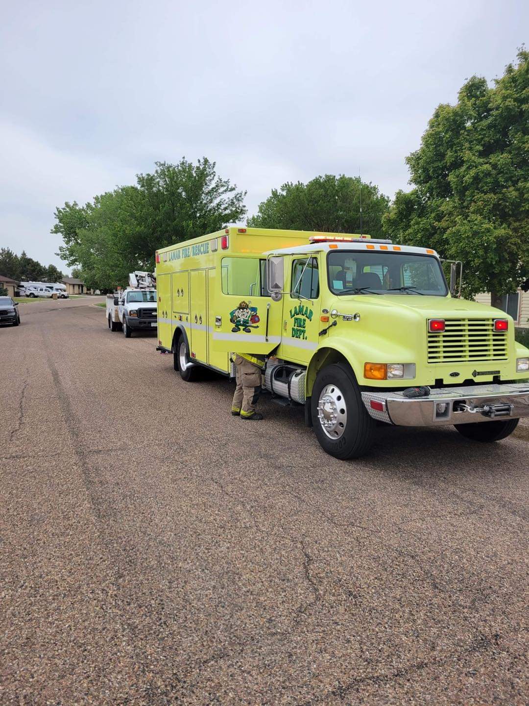 "Thank you to Lamar Police Department, Lamar Light and Power and Atmos energy. Units on scene were Truck 1, Engine 6, Engine 5, Med2, Med 3, Chief 1, and Quint 1 on stand by."