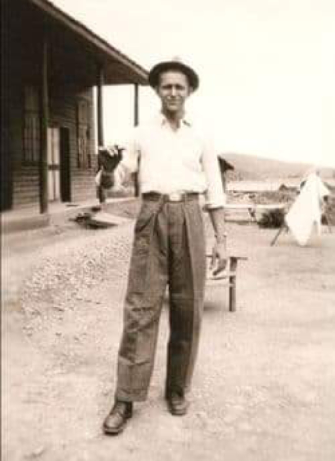 Pictured here with his first wife and adopted daughter, refugees from Kaisersesch, Germany, 1952.