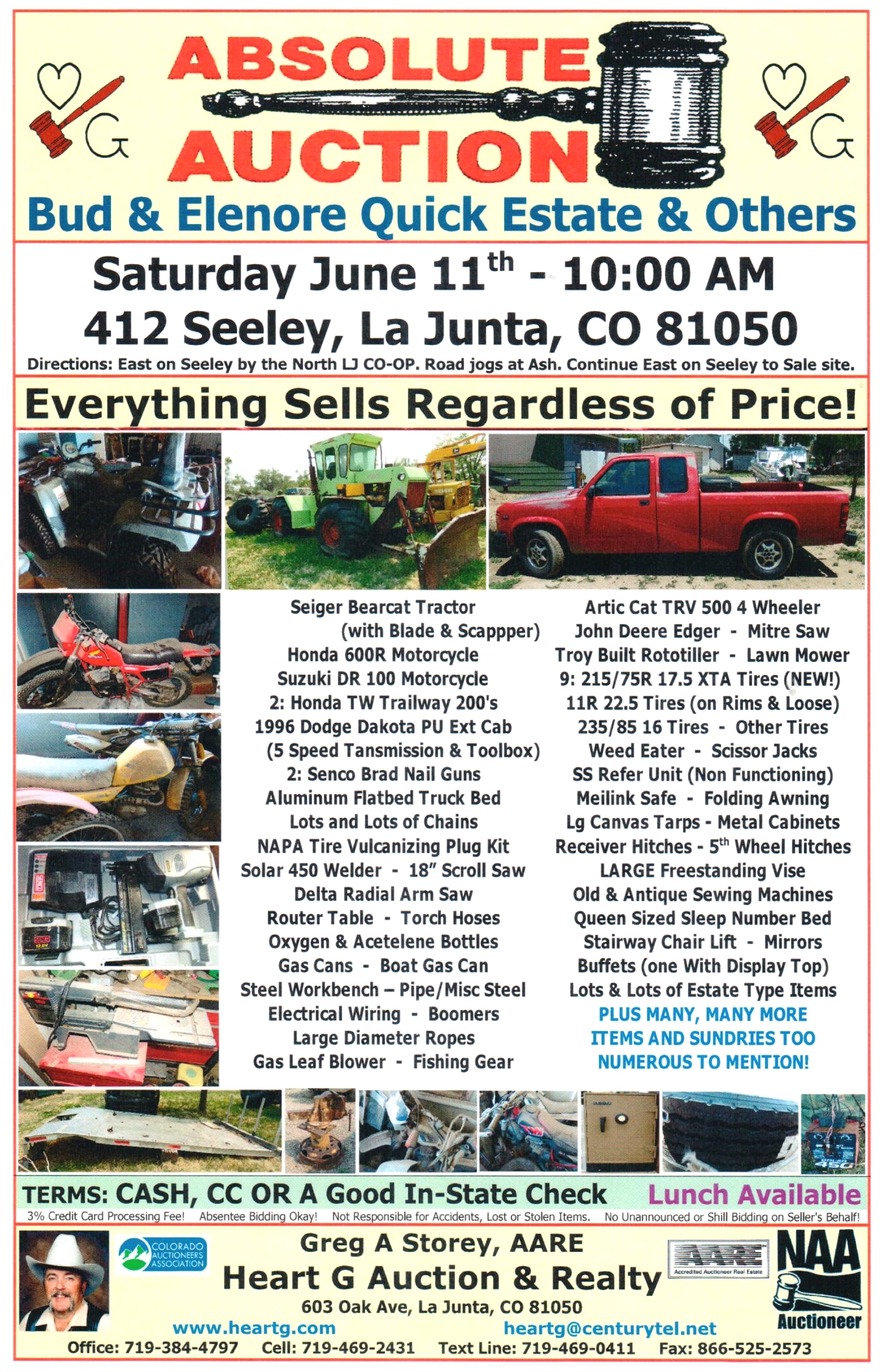 Bud & Elenore Quick Estate Auction Saturday June 11th