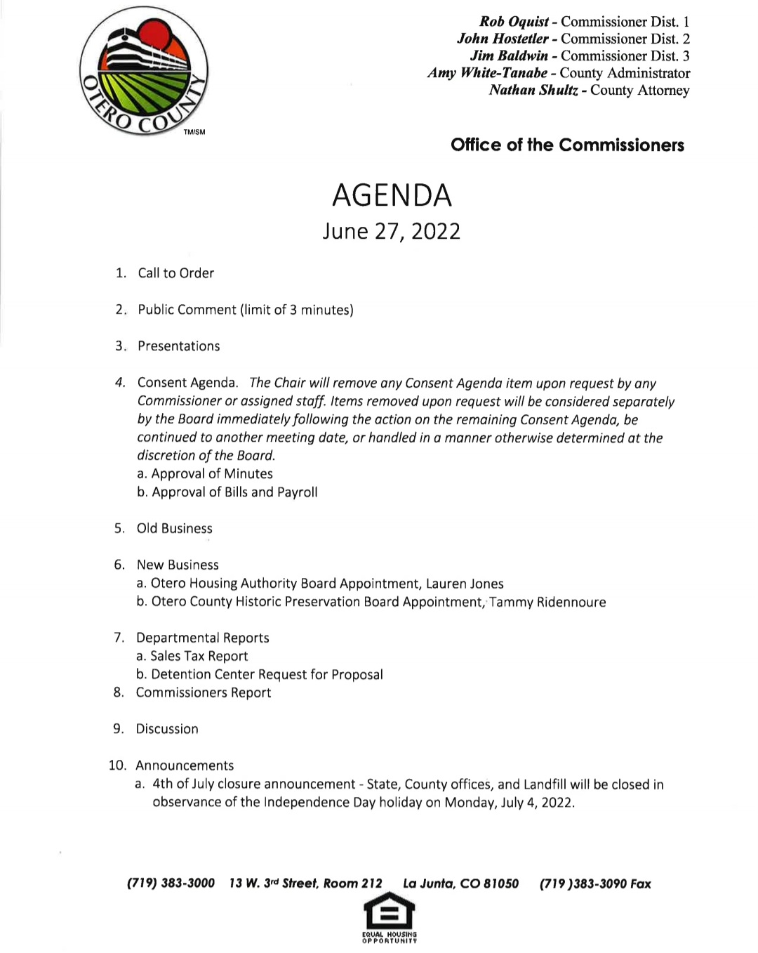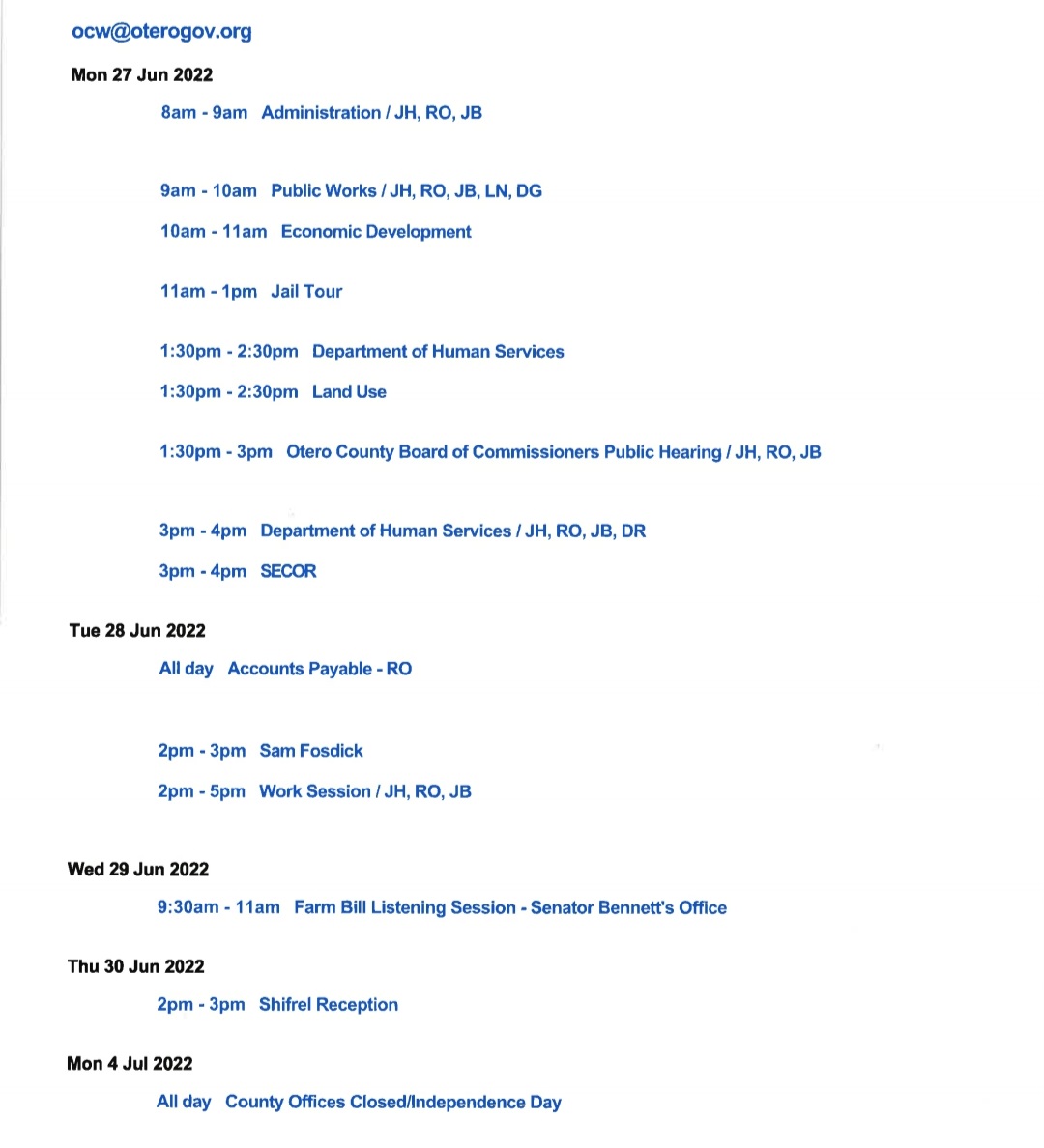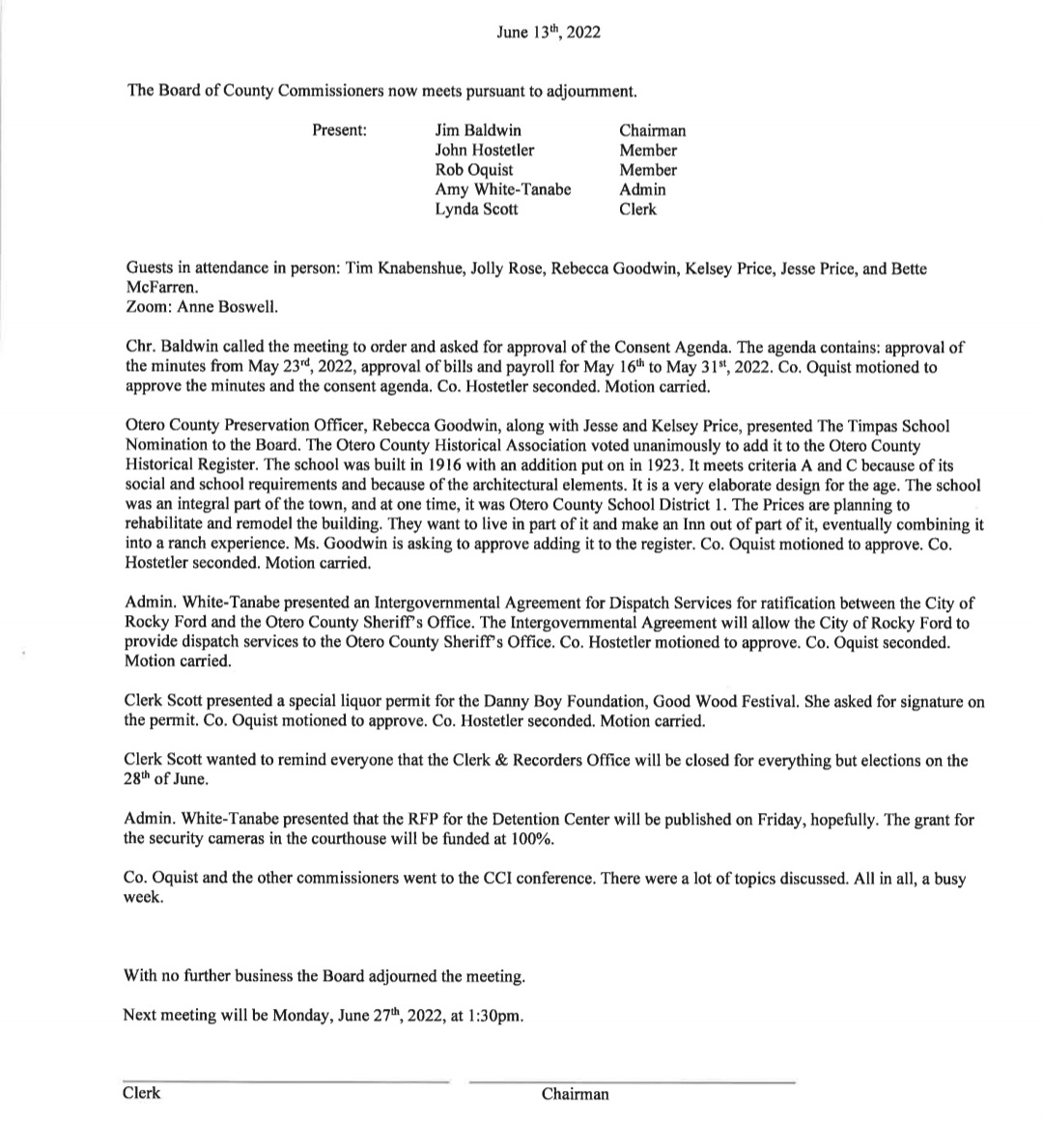 Otero County Commissioners June 13, 2022 Meeting Minutes