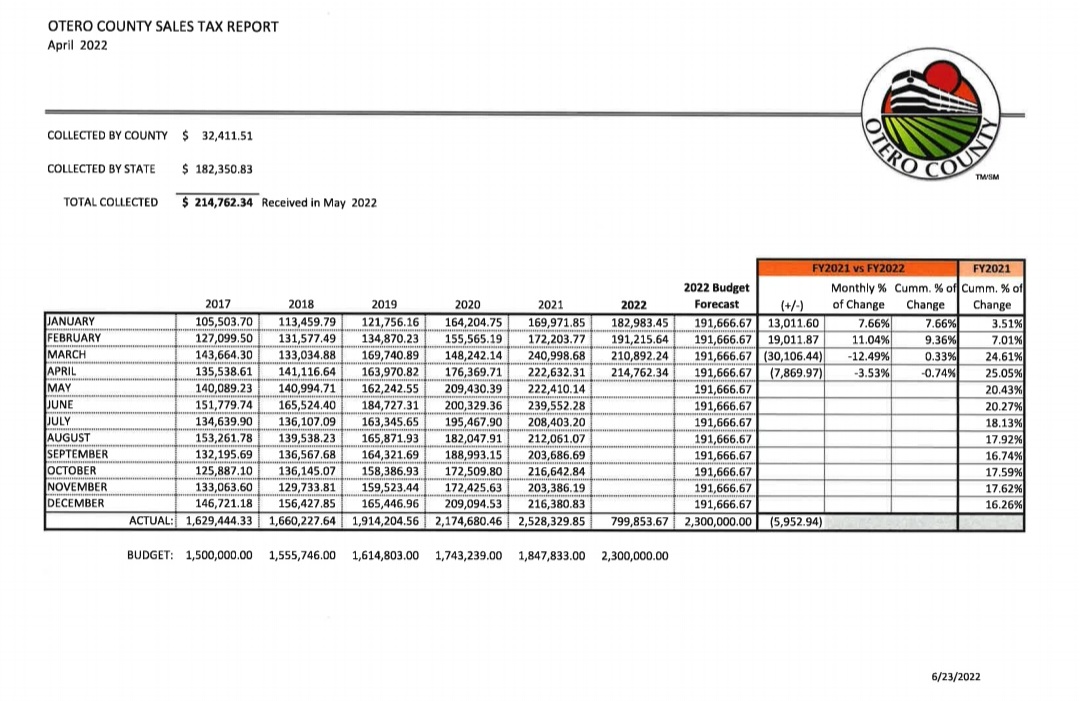 Otero County Administrator Amy White-Tanabe reported on Tax revenues and gave historical comparisons over the last several years. She also said that the county is actively seeking contractor bids for the new Otero County Detention Center. Watch the Video Here: