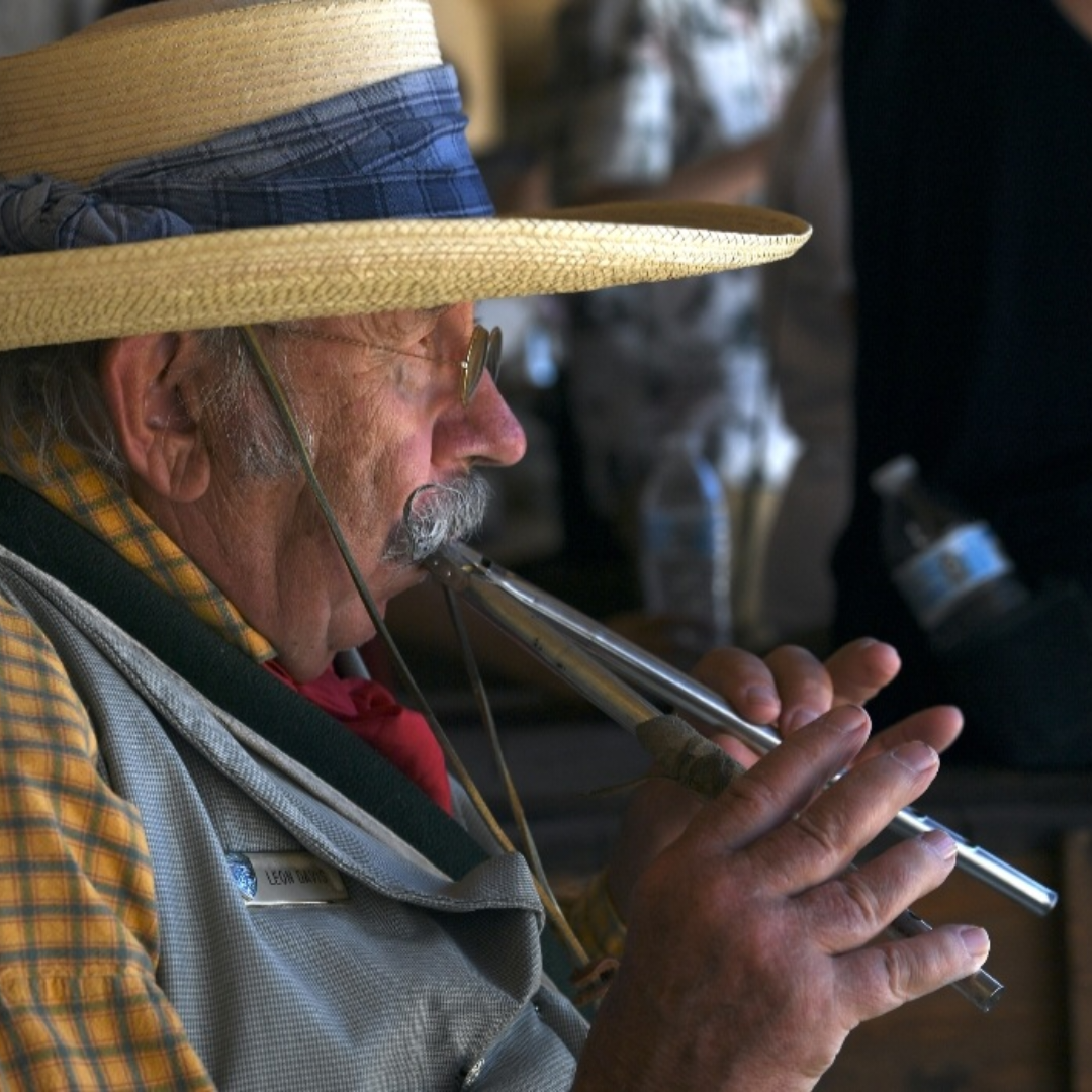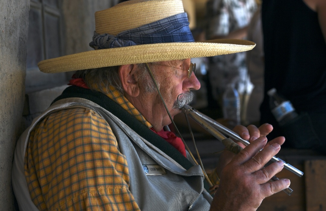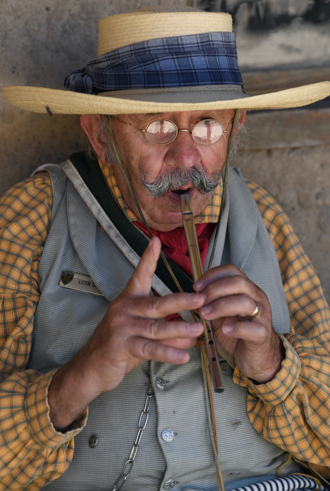 Volunteer Leon Davis with flutes (carpenter). (Photo By Cindy Smith)