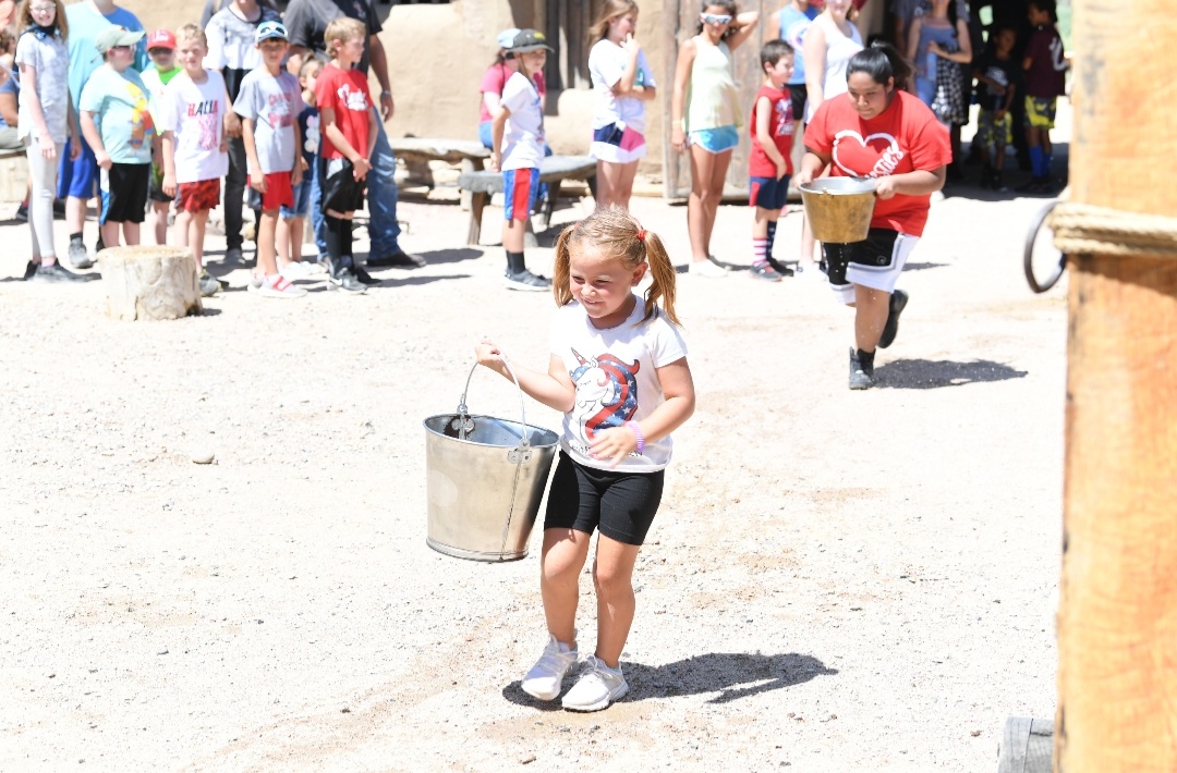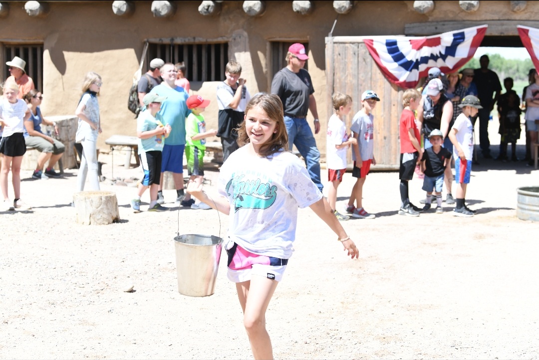 Visitors to the fort competed in a traditional water bucket relay and a piñata break.