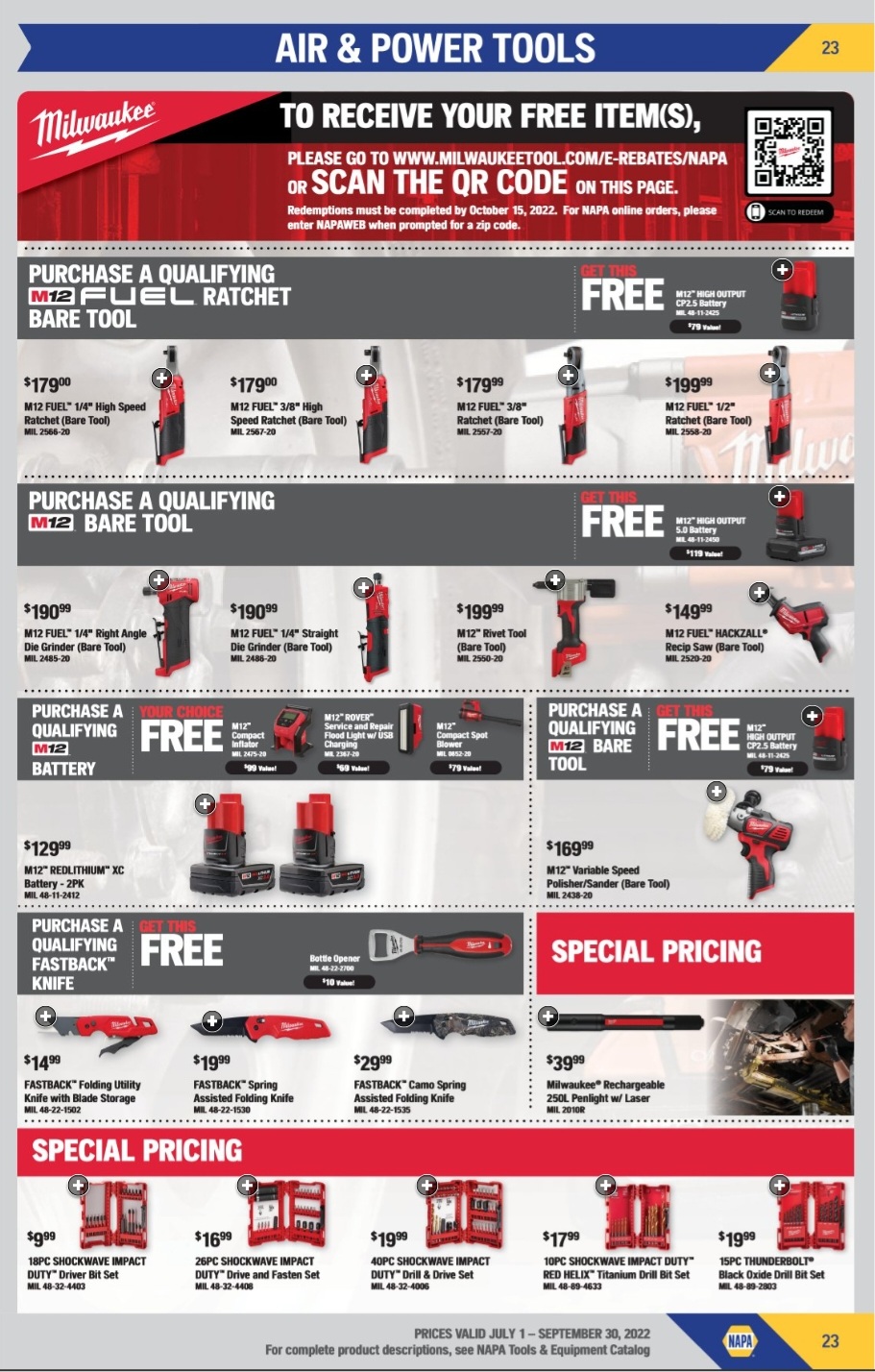 Description: Complete Napa REAL DEALS Catalog for Q3 2022. Pick up a hard copy at Rocky Ford Auto Parts.