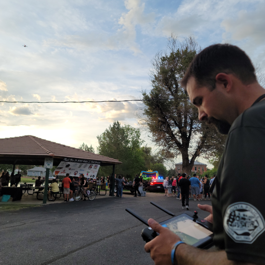 The LJPD broke out all the toys for Police in The Park, including a drone.