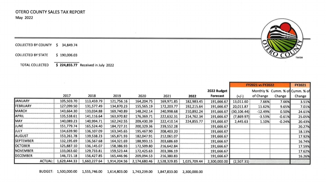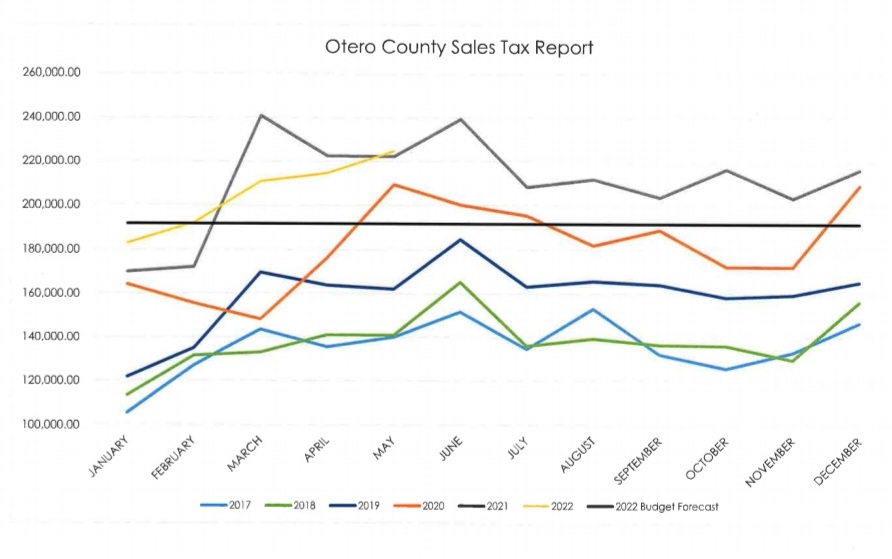 White-Tanabe reported on the Otero County Sales Taxes for May, 2022.