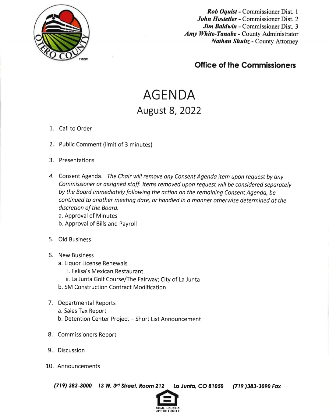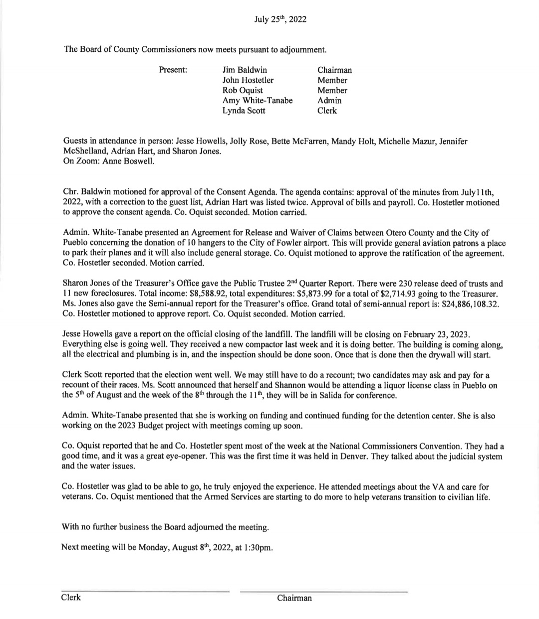 Description: Article includes meeting documents, video coverage, and meeting notes for the August 8, 2022 Otero County Commissioners Meeting.