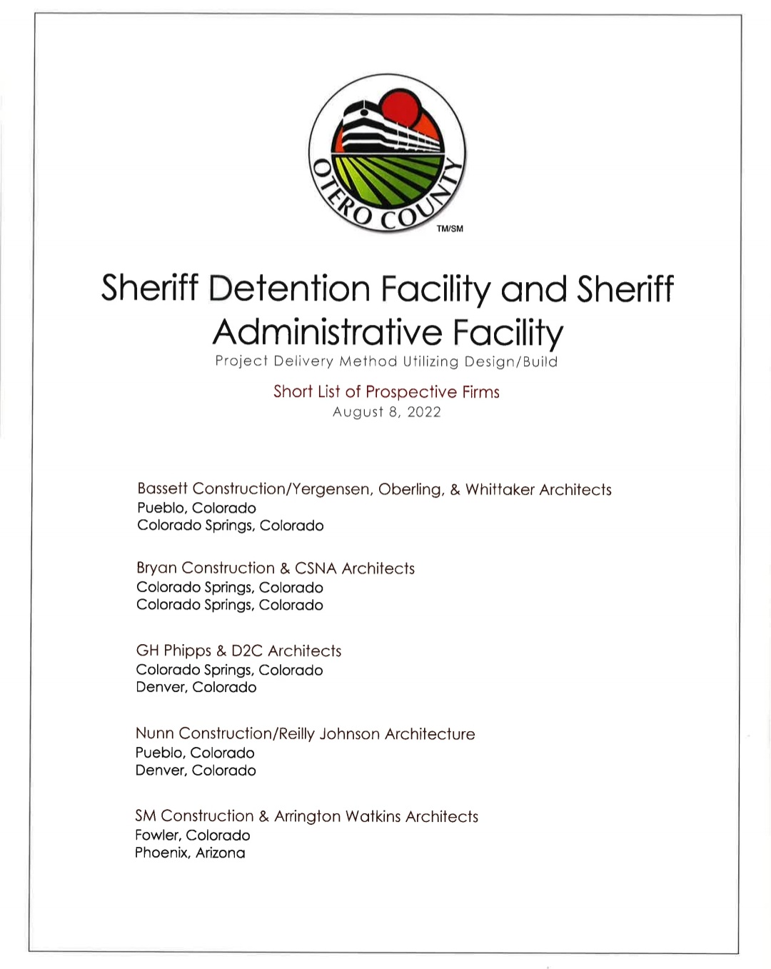White-Tanabe announced the contractors who have applied and qualified for the design of the Otero County Detention Center and Otero Sheriff's Office Project. They will announce the winners September 26. With a start date of November 2022, White-Tanabe said the projected completion date is Spring of 2024.