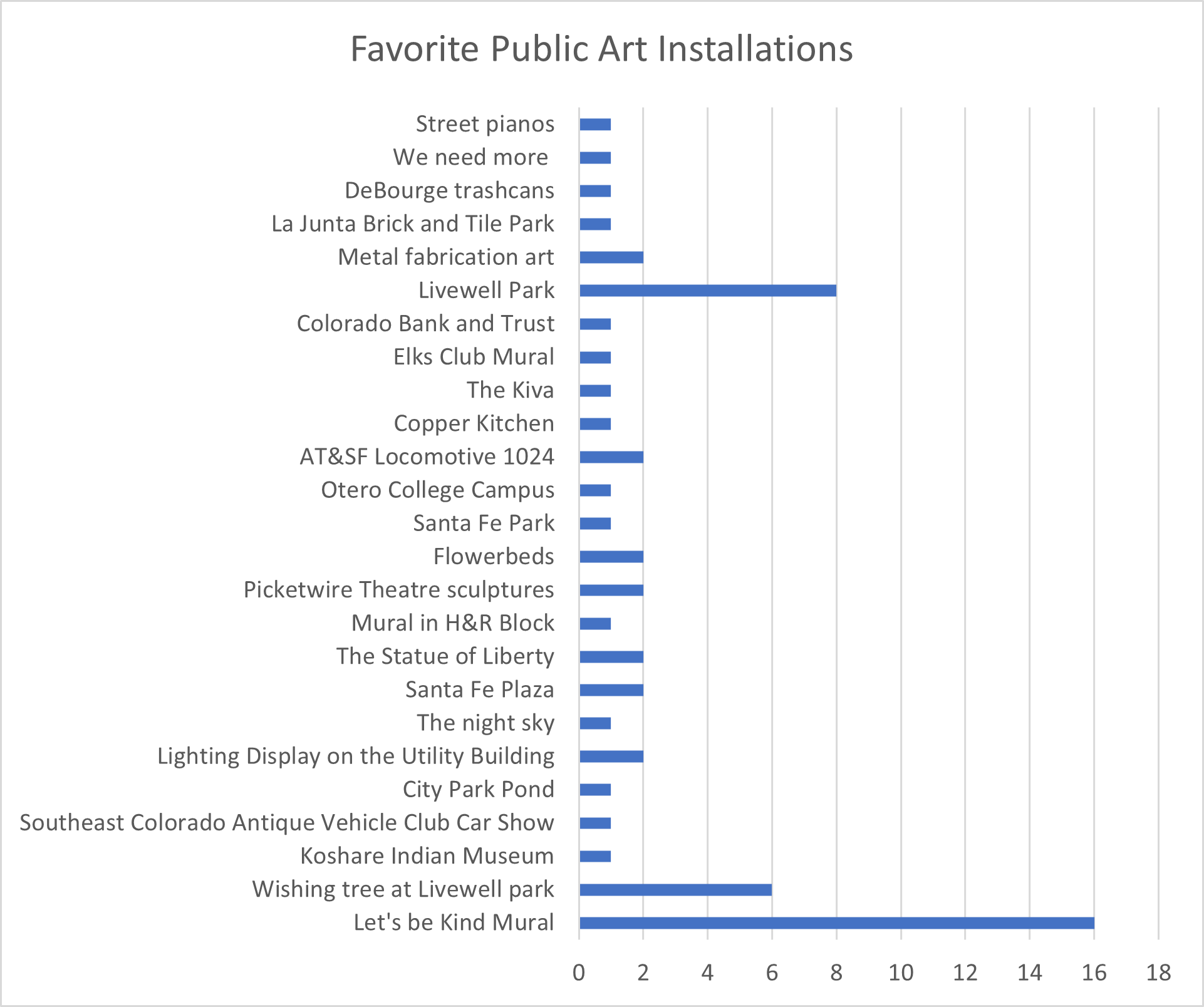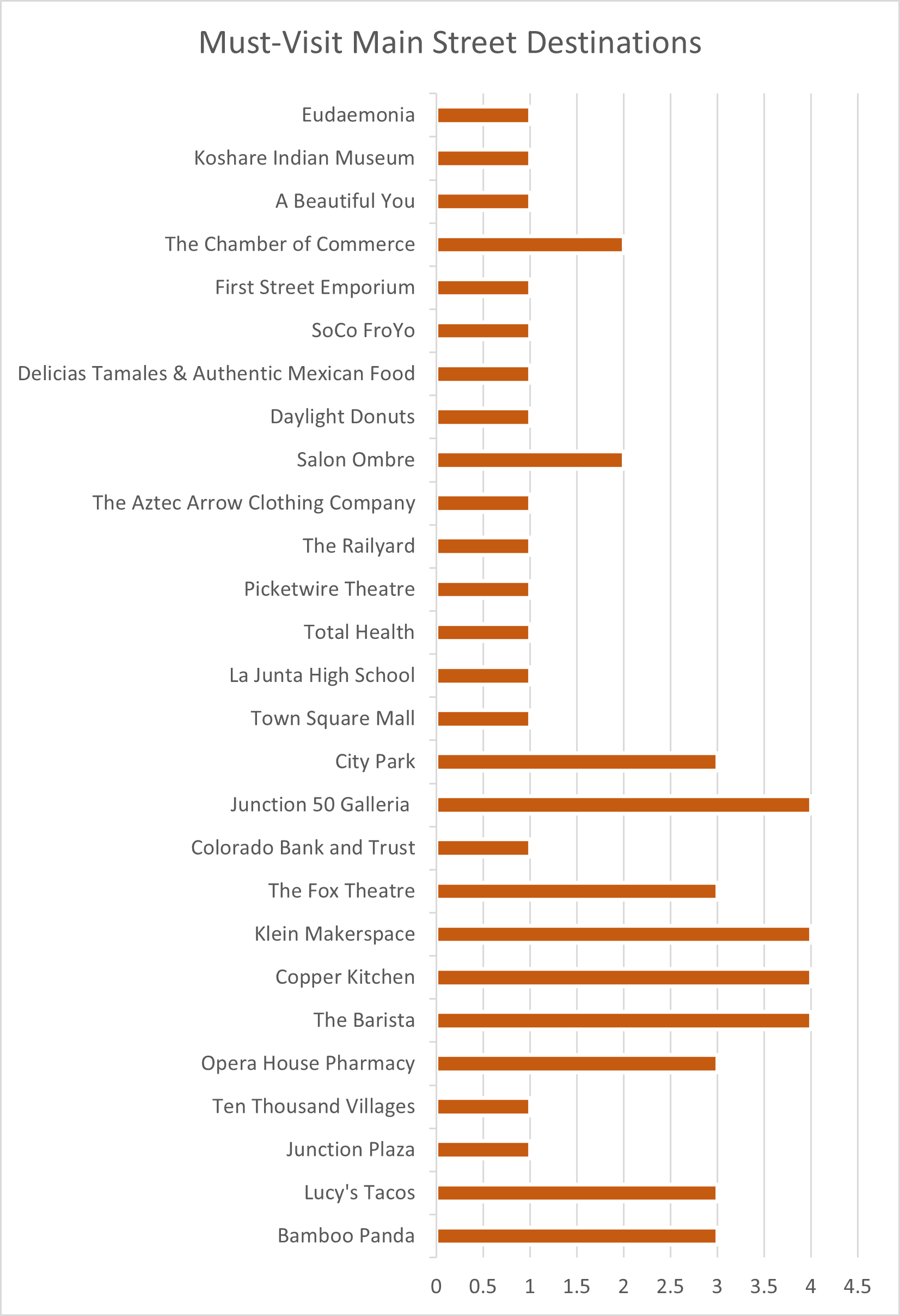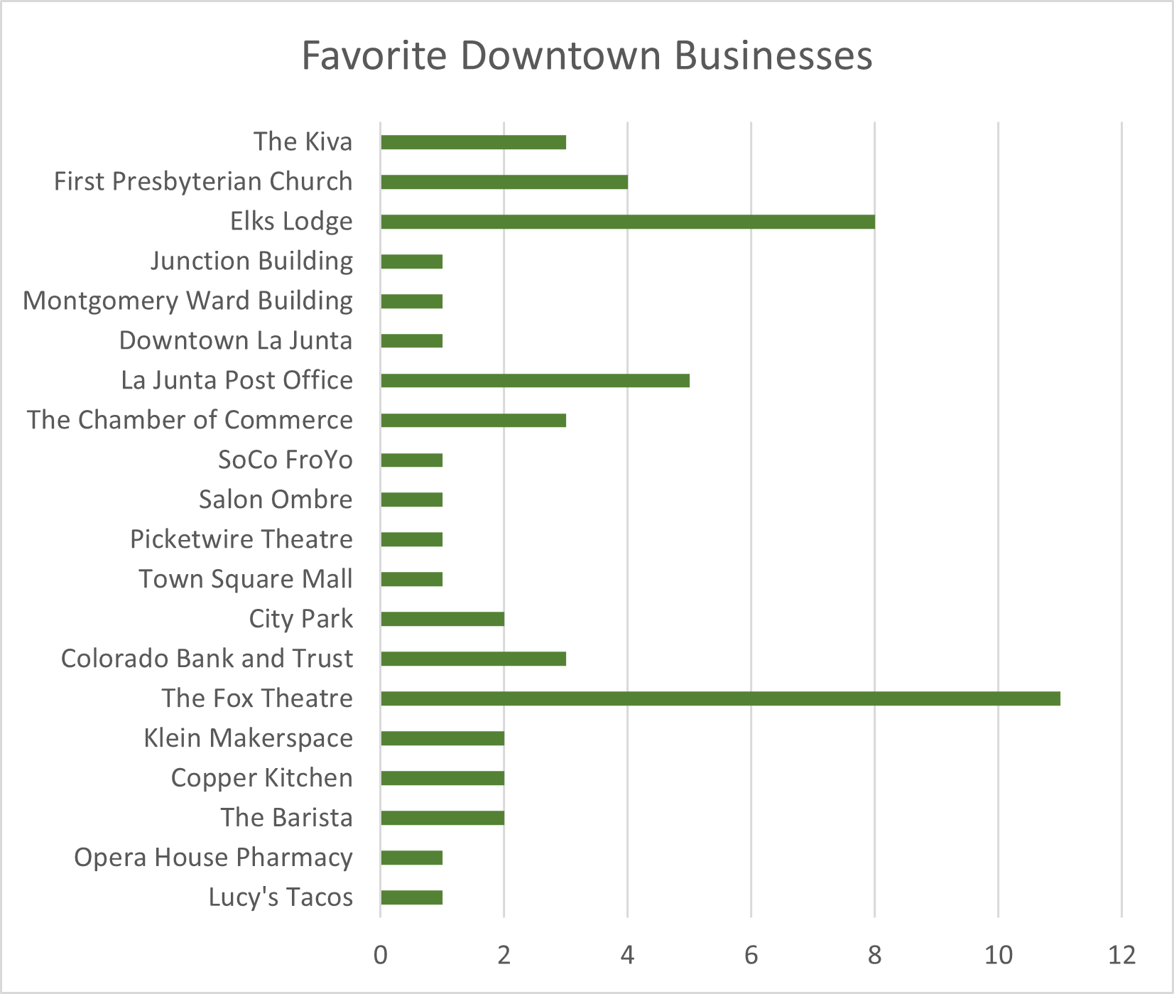 After sending the results to Colorado Main Street, the responses were tabulated and pulled together in colorful presentations for the public to enjoy. La Junta came in second place for the most surveys in comparison to all the Colorado Main Street communities.