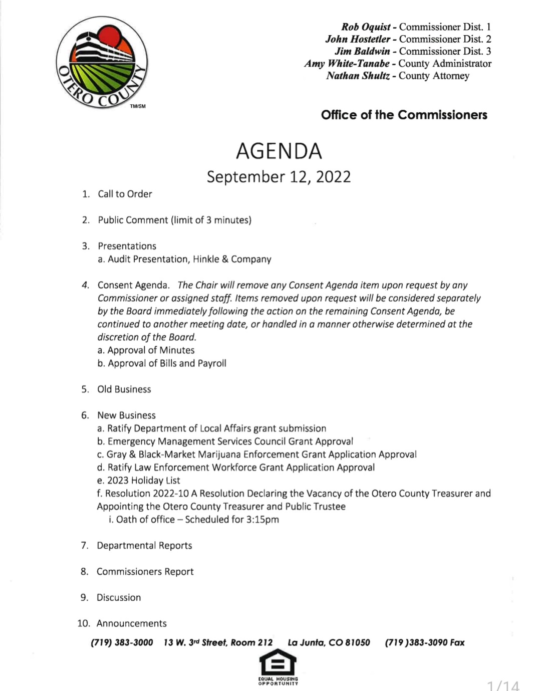 Description: Press Play to Watch the Otero County Commissioners September 12, 2022 Meeting.