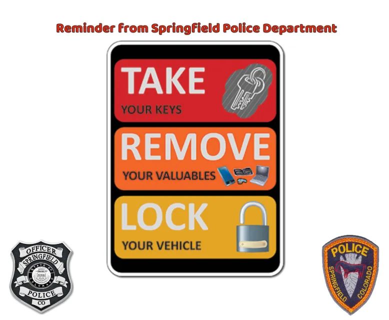 The Springfield Police Department has received two (updated: 4) theft from auto reports this week. We want to remind you that a majority of theft from vehicles are crimes of opportunity; for example, valuable items in plain view, vehicles unlocked, and open pickup beds.