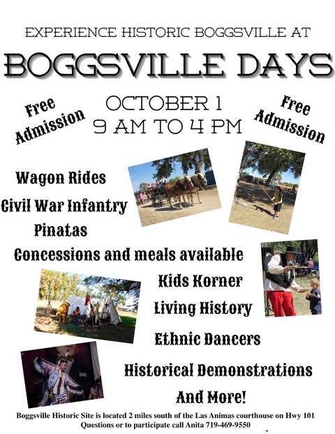 The Boggsville Historic Site is located in Las Animas, Colorado, about 2 miles south of the courthouse on Hwy 101. See you Saturday!
