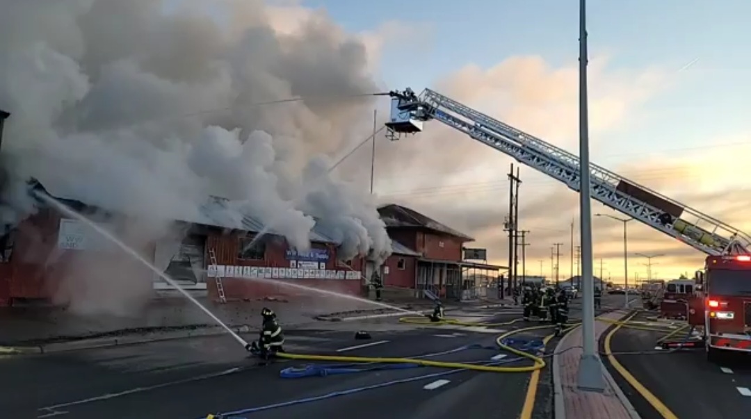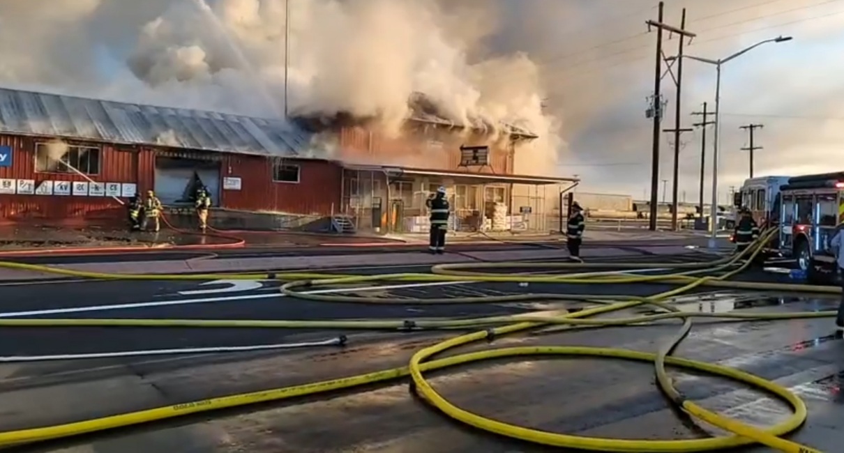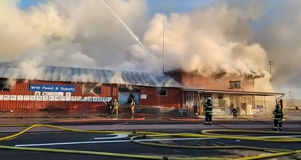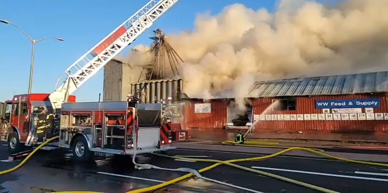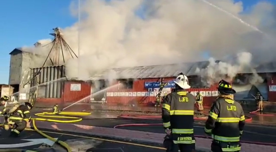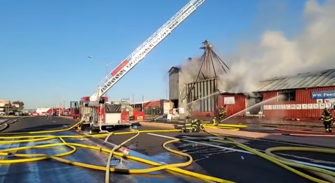 La Junta Fire Chief Brad Davidson said, "At approximately 6:45 LJFD was paged out to a structure fire at WW Feeds in La Junta. While in route, we were informed heavy smoke and fire were showing in the middle of the building."