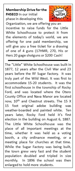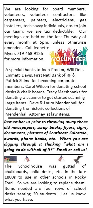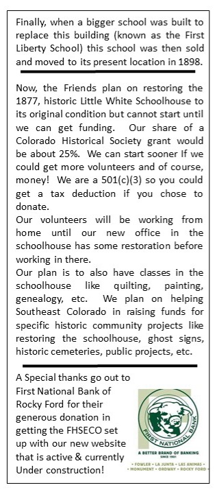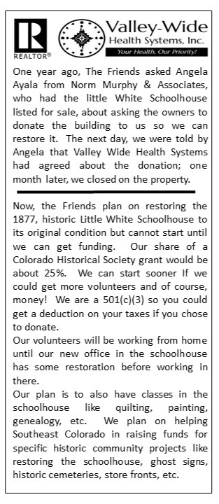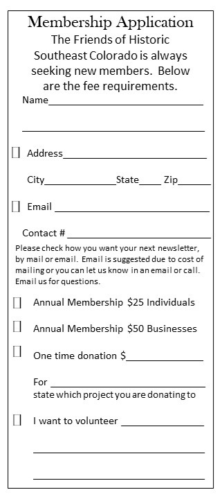 Friends of Historic Southeast Colorado Membership Drive and Newsletter