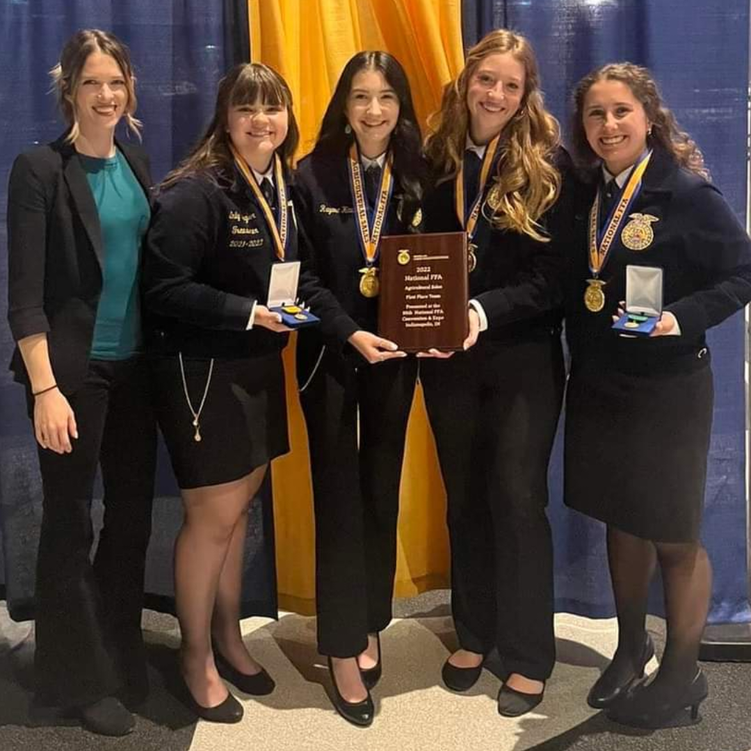 FFA Coach Emma Jones Fredrickson with the Crowley County national placers.