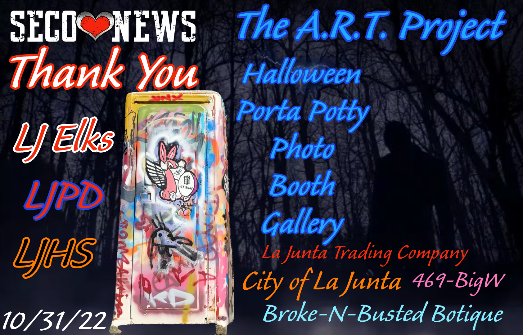 Description: The A.R.T. Project & SECO News Halloween Photo Gallery Sponsored by The City of La Junta, 469-BigW, Broke-N-Busted Botique, and La Junta Trading Company.